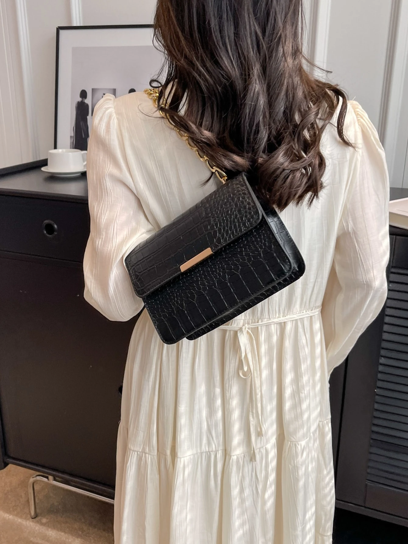 Small Square Bag Crocodile Embossed Chain Strap Elegant Style
