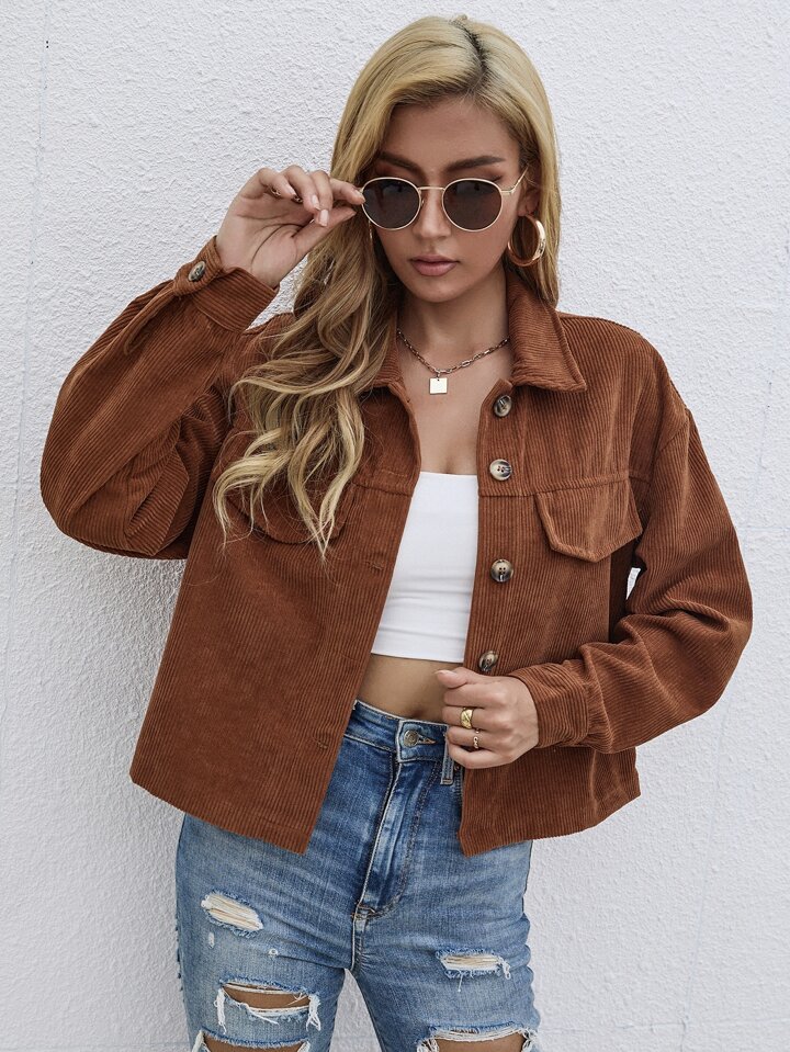 Solid Button Front Pocket Detail Jacket Fall Winter Cloth For Women