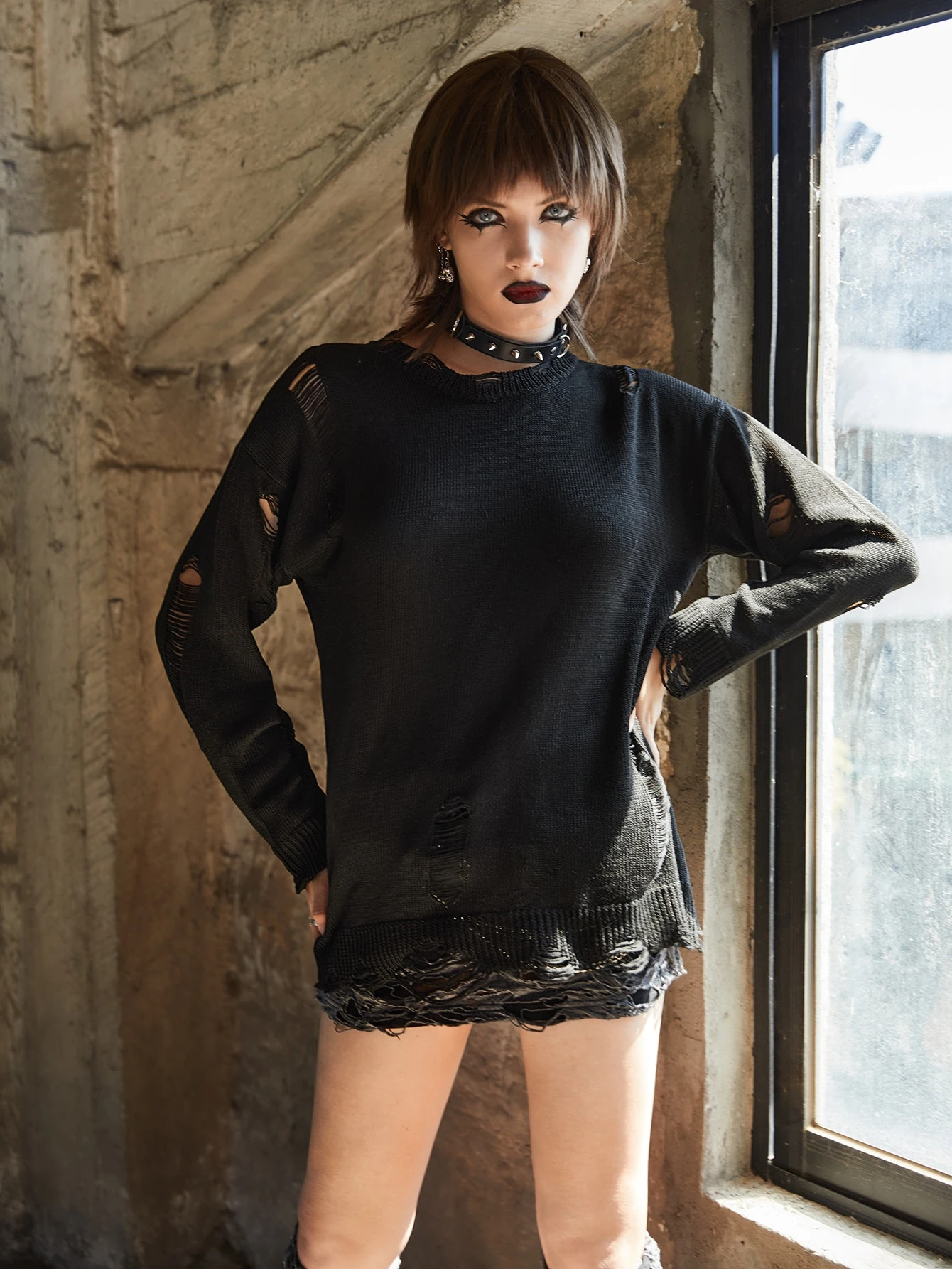 Solid Distressed Sweater