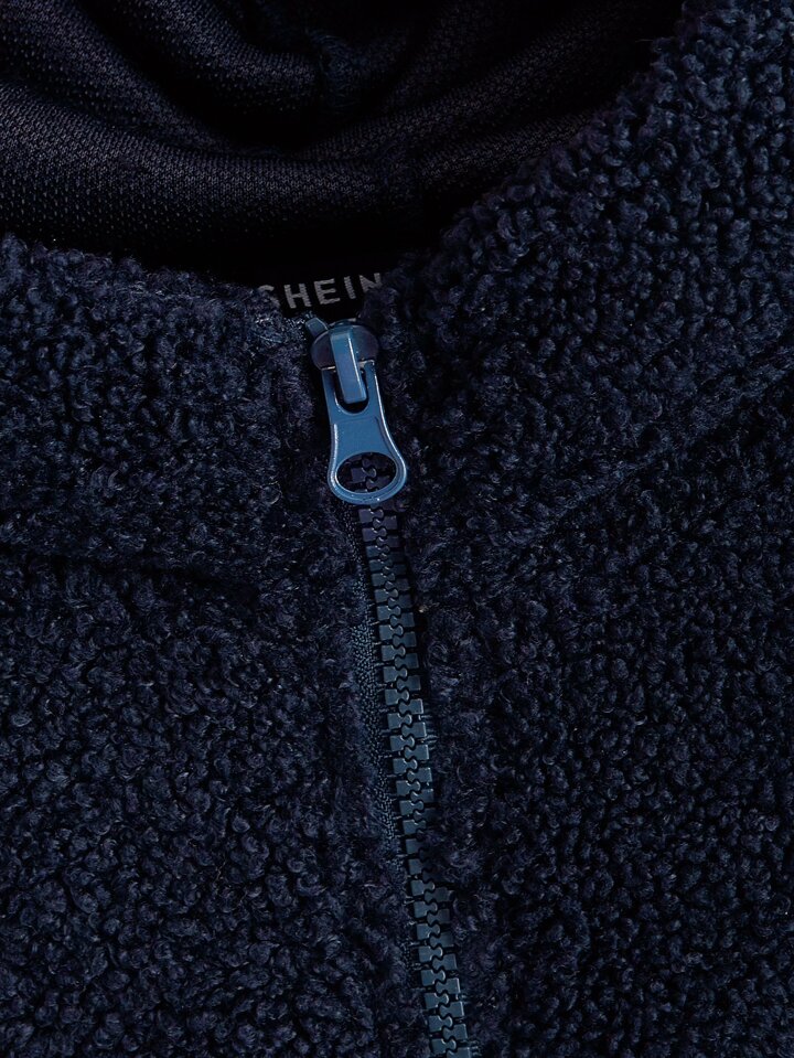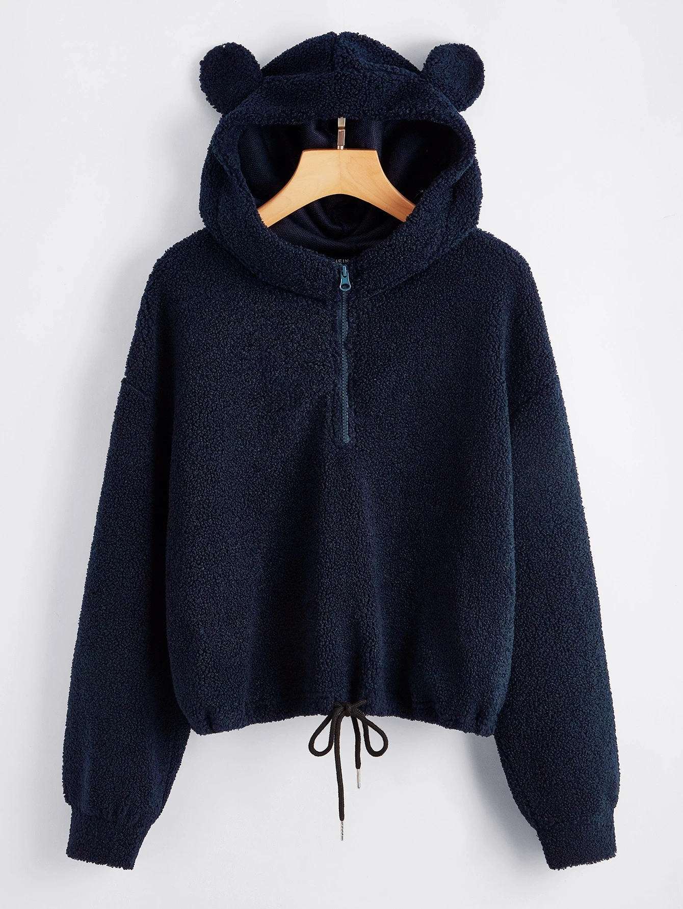 Solid Half Zip 3D Ears Design Teddy Hoodie