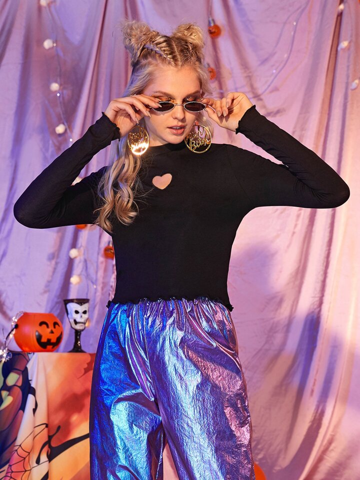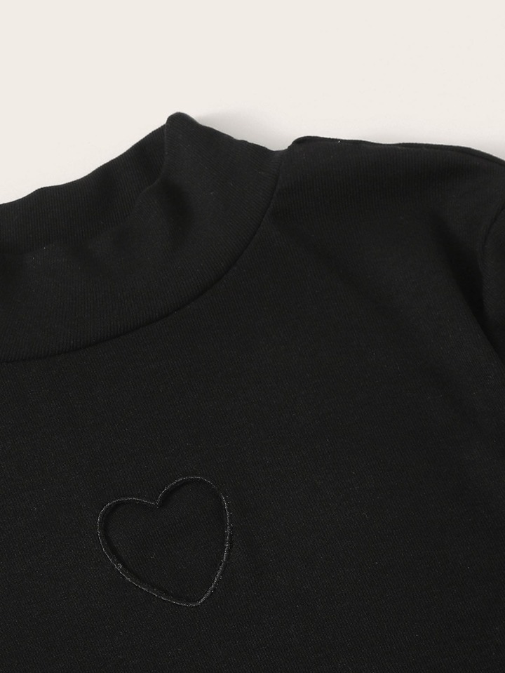 Solid Heart Cut Out Lettuce Trim Tee