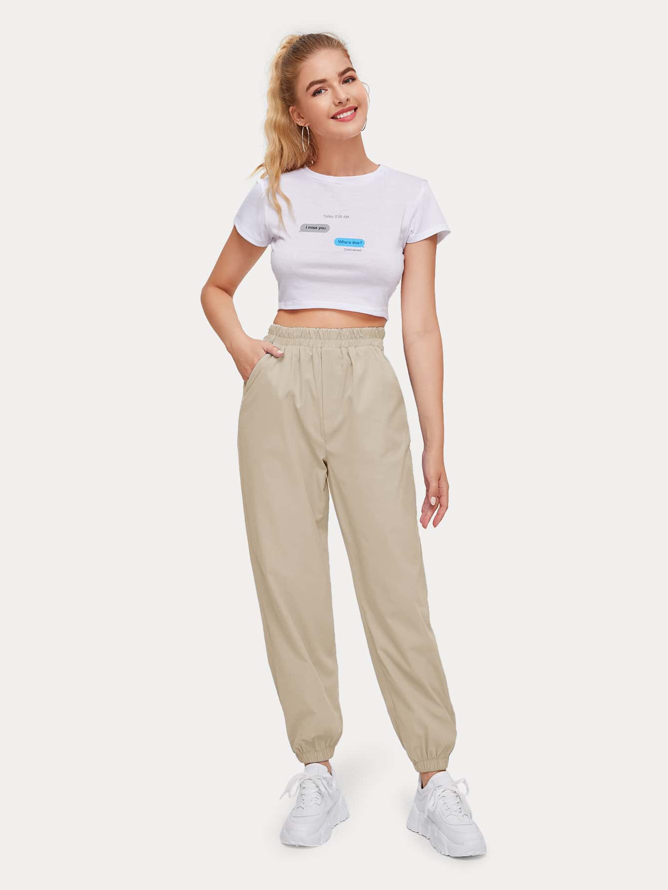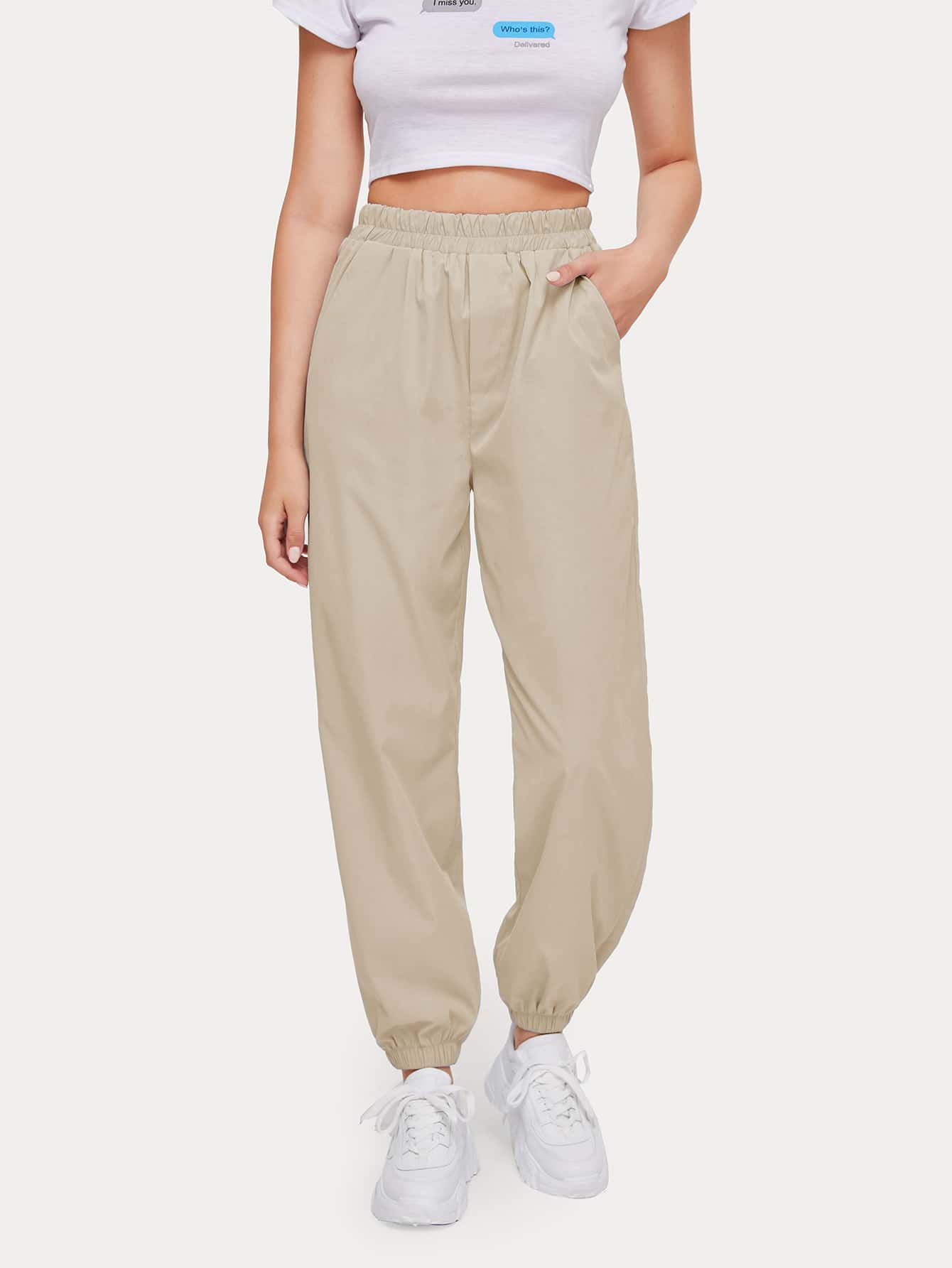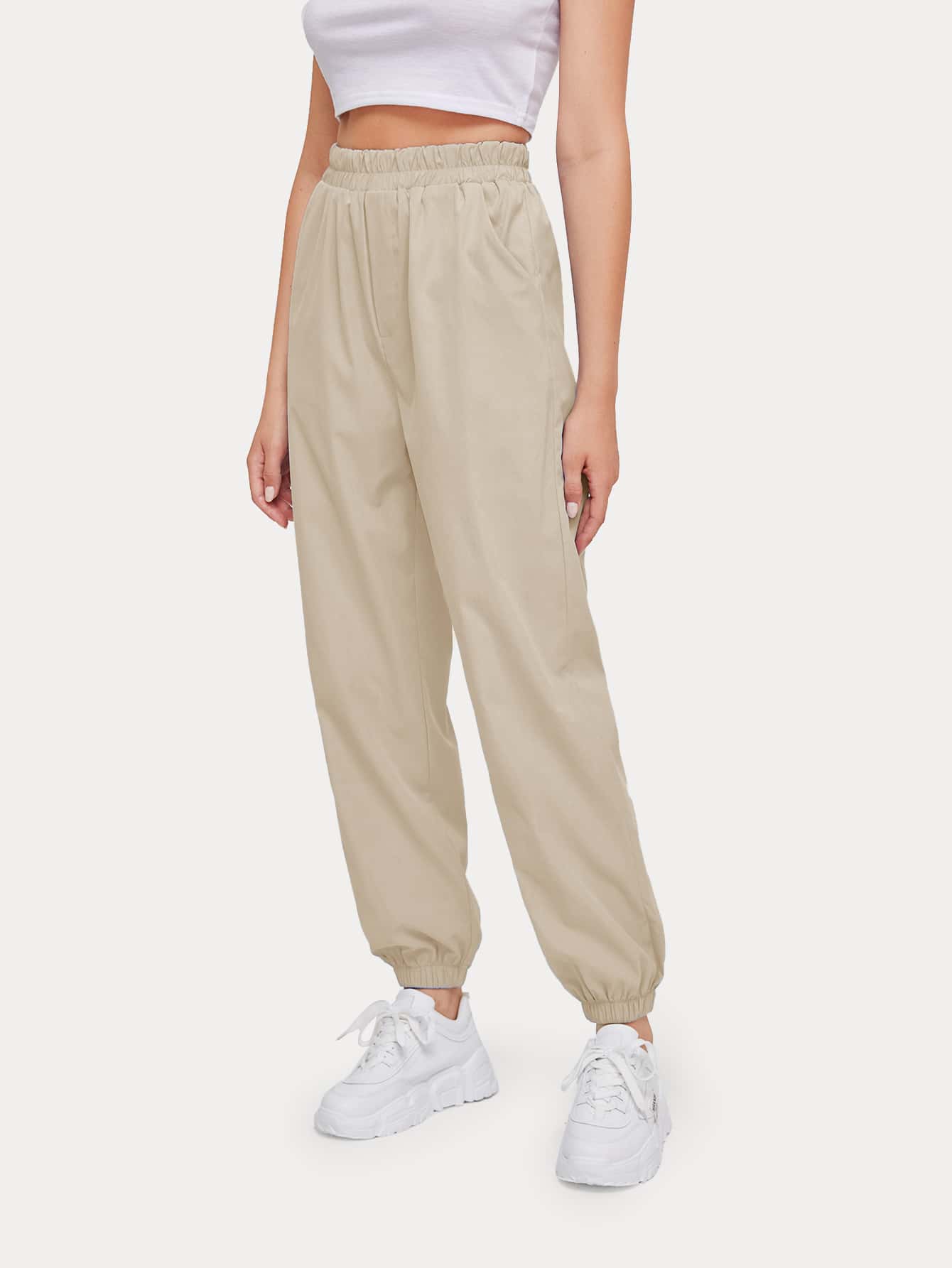 Solid High Waist Joggers