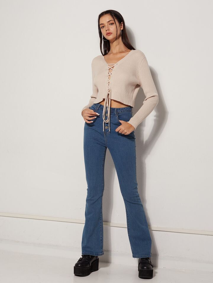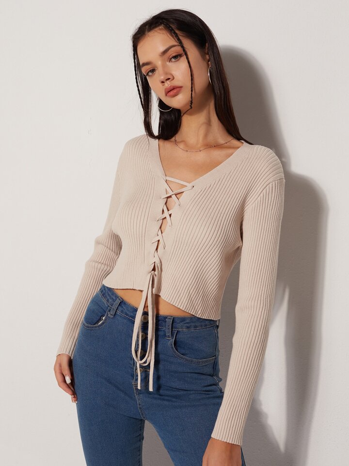 Solid Lace Up Sweater