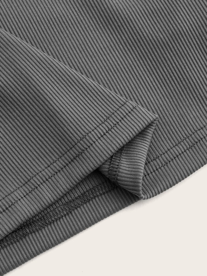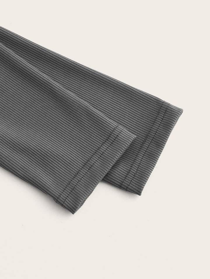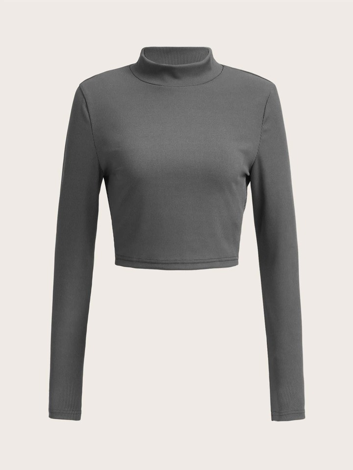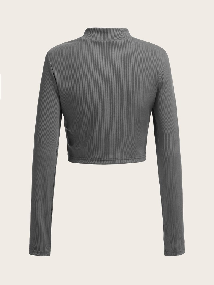 Solid Mock Neck Ribbed Crop Tee