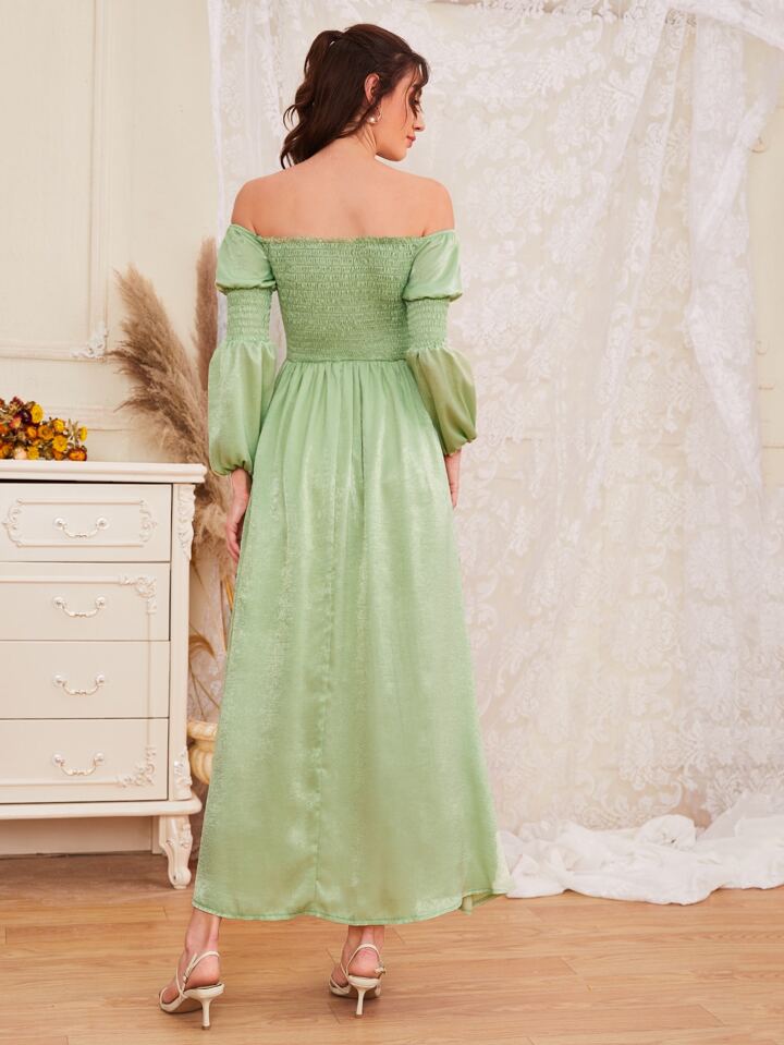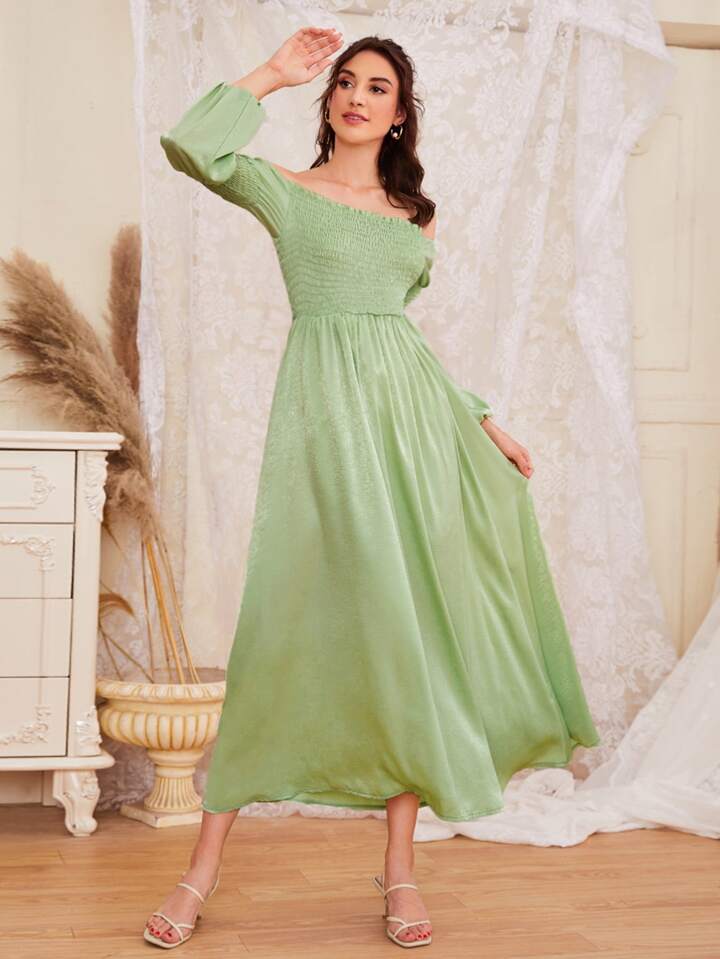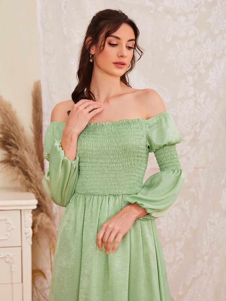 Solid Shirred Off Shoulder Dress