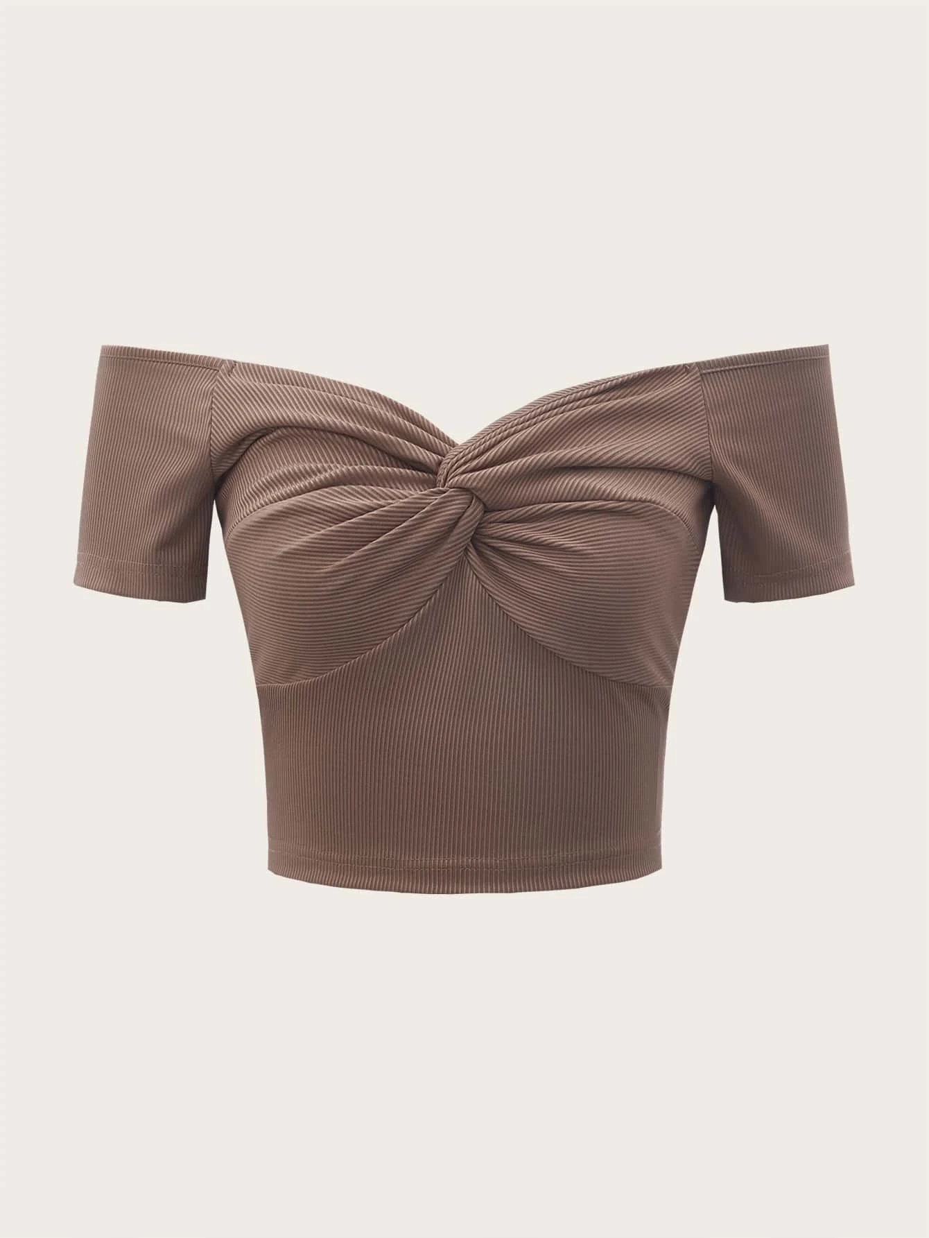 Solid Twist Off The Shoulder Ribbed Crop Tee