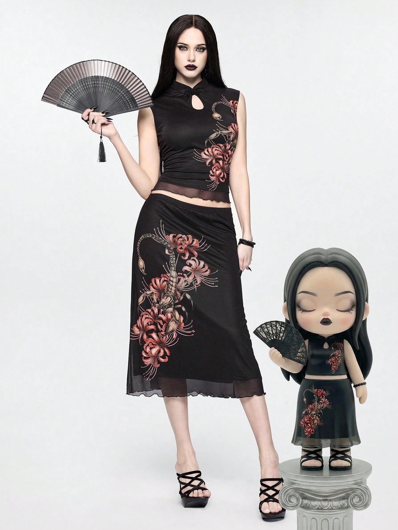 Spring/SummergraphicGothic Scorpion & Amaryllis Flower Print Women Set