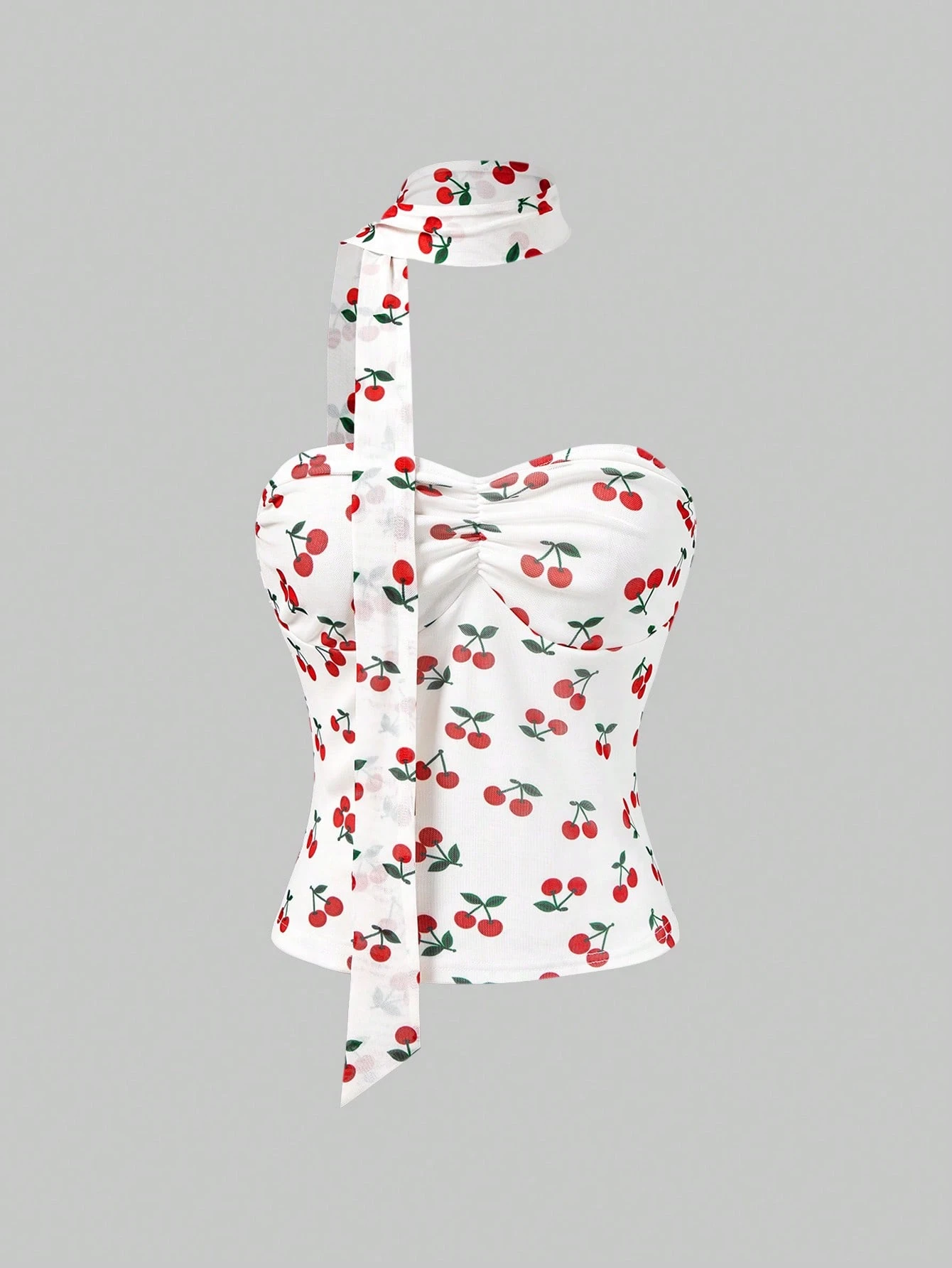 Spring/Summervalentine's DaycasualWomen's Vintage Cherry All-Over Print Mesh Tight Top