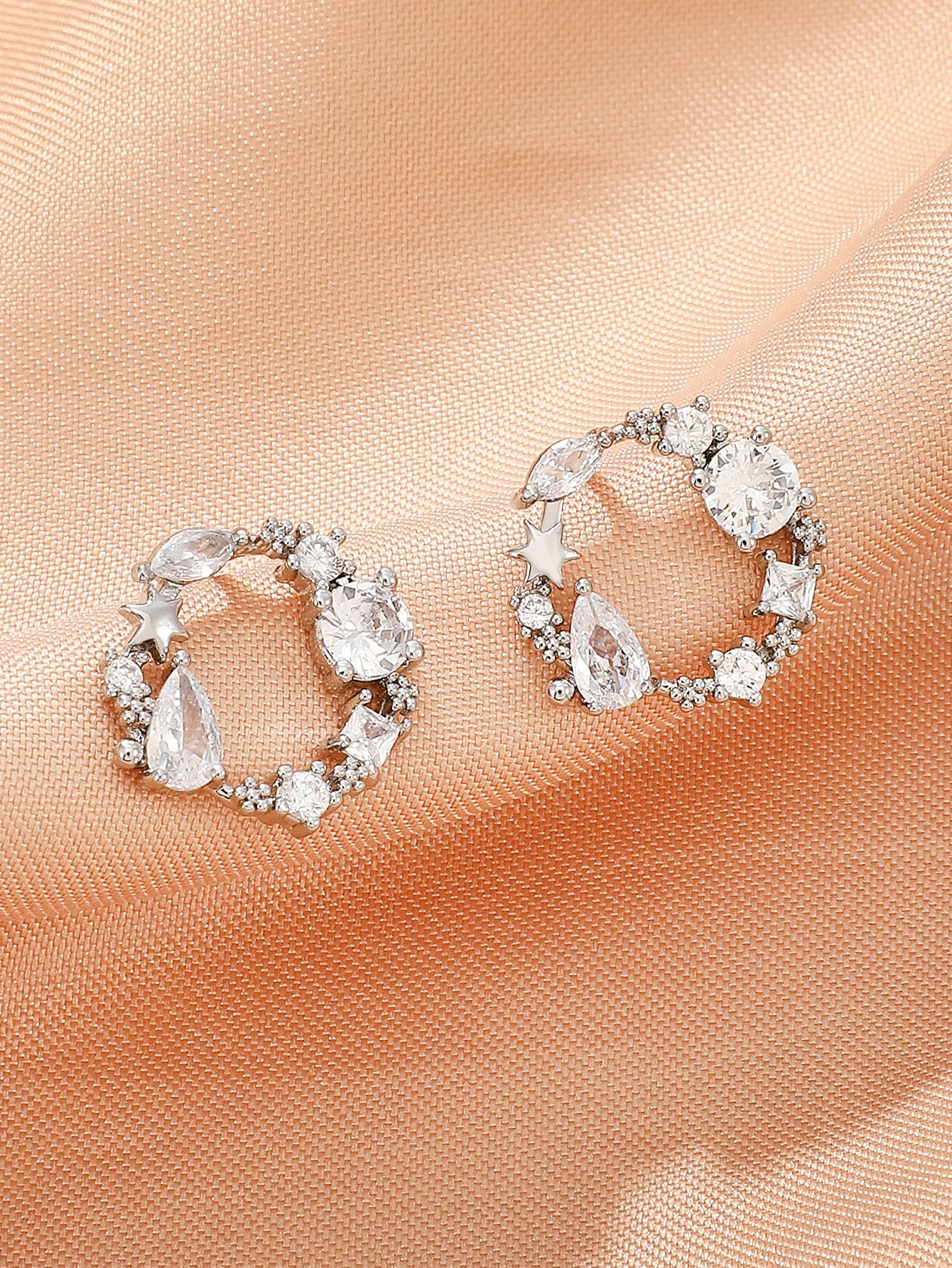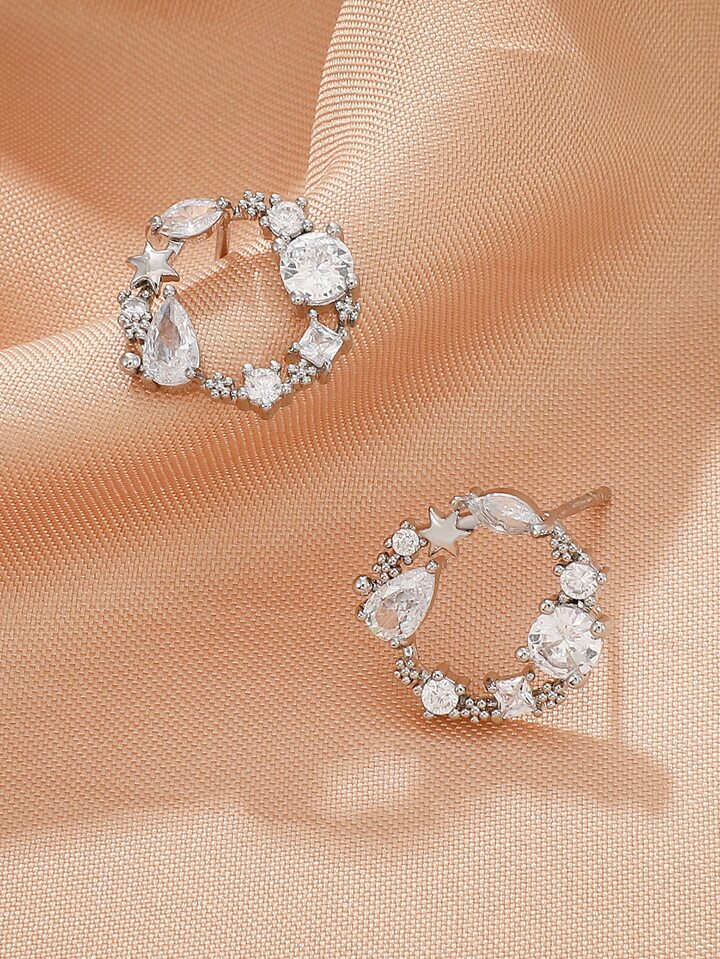 Star & Cubic Zirconia Decor Stud Earrings