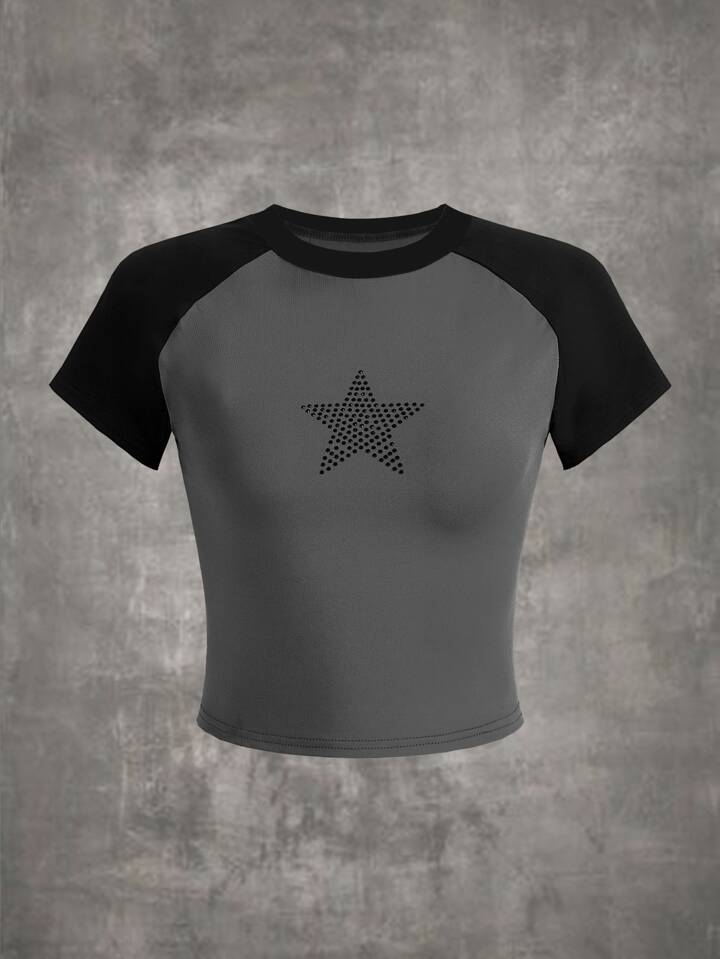 Star Rhinestone Raglan Sleeve Tee