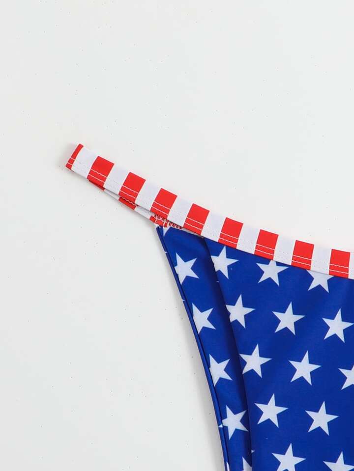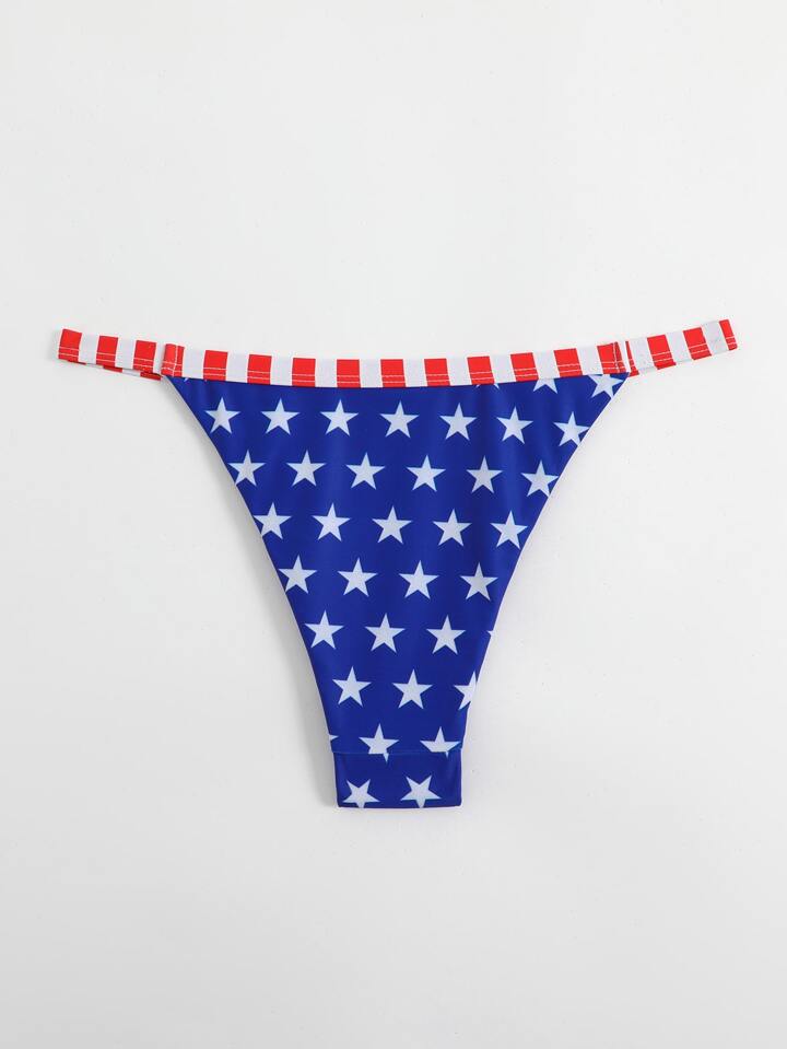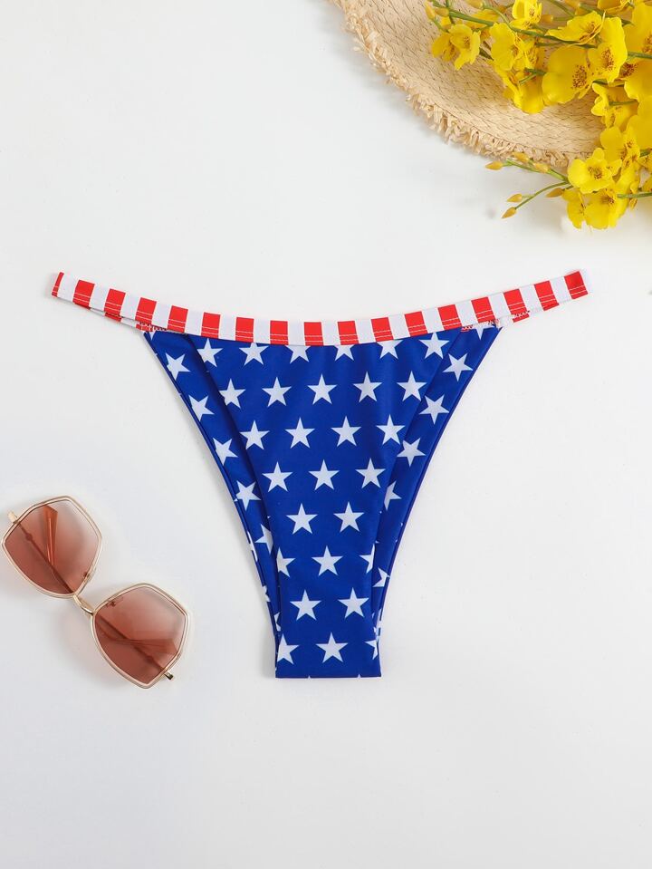 Star USA Flag Print Striped Trim Bikini Bottom For Summer Beach 4th Of July