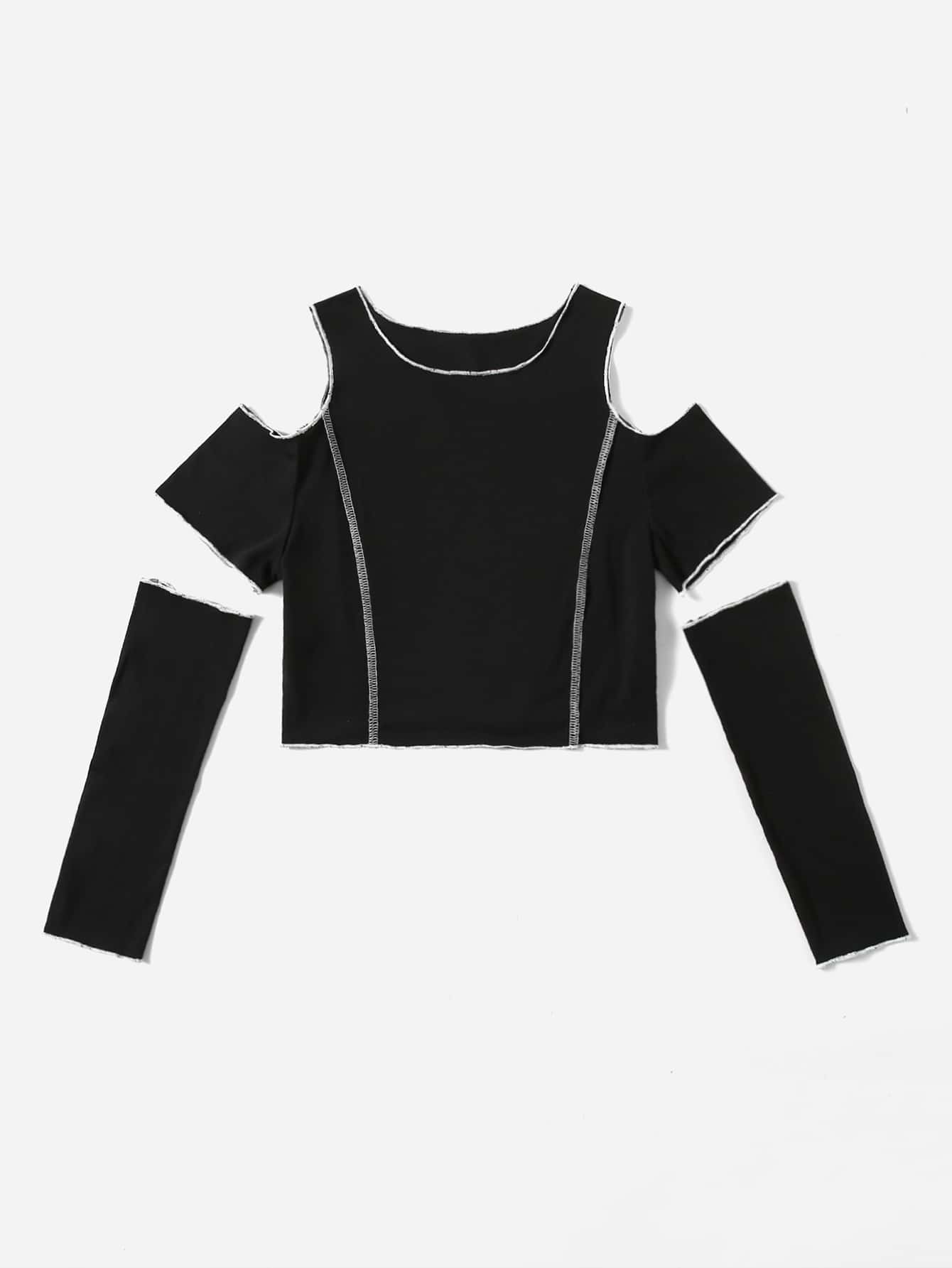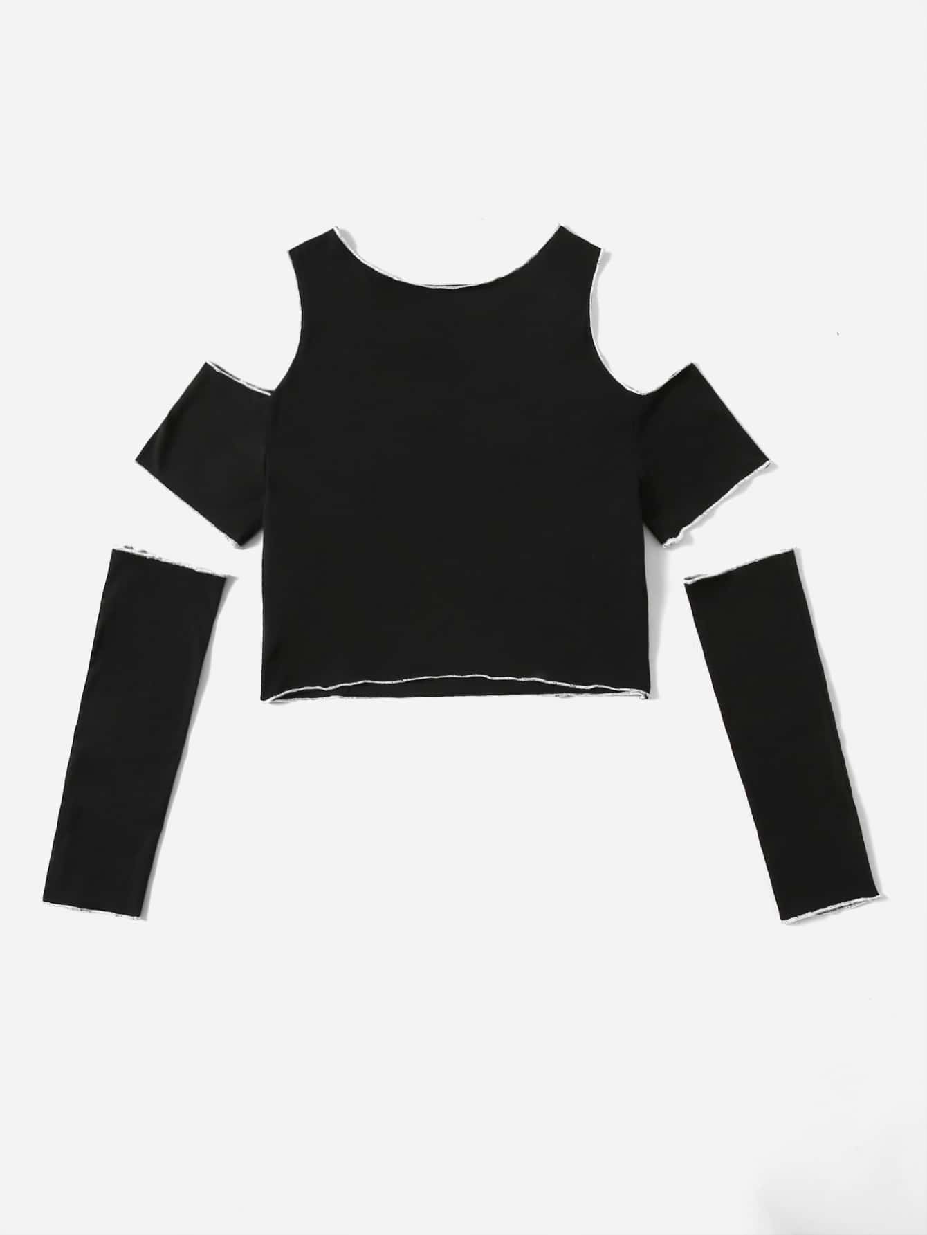 Stitching Trim Cut Out Crop Tee & 1pair Oversleeve
