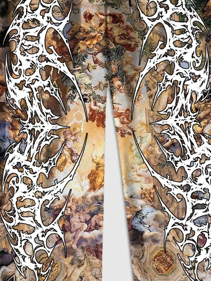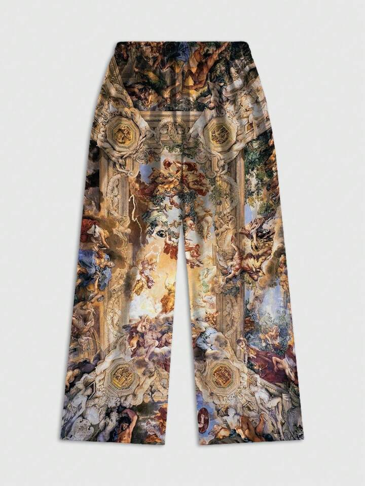 Street Life 1pc Men's Casual All-Over Print Drawstring Waist Relaxed Straight Leg Pants, For Autumn