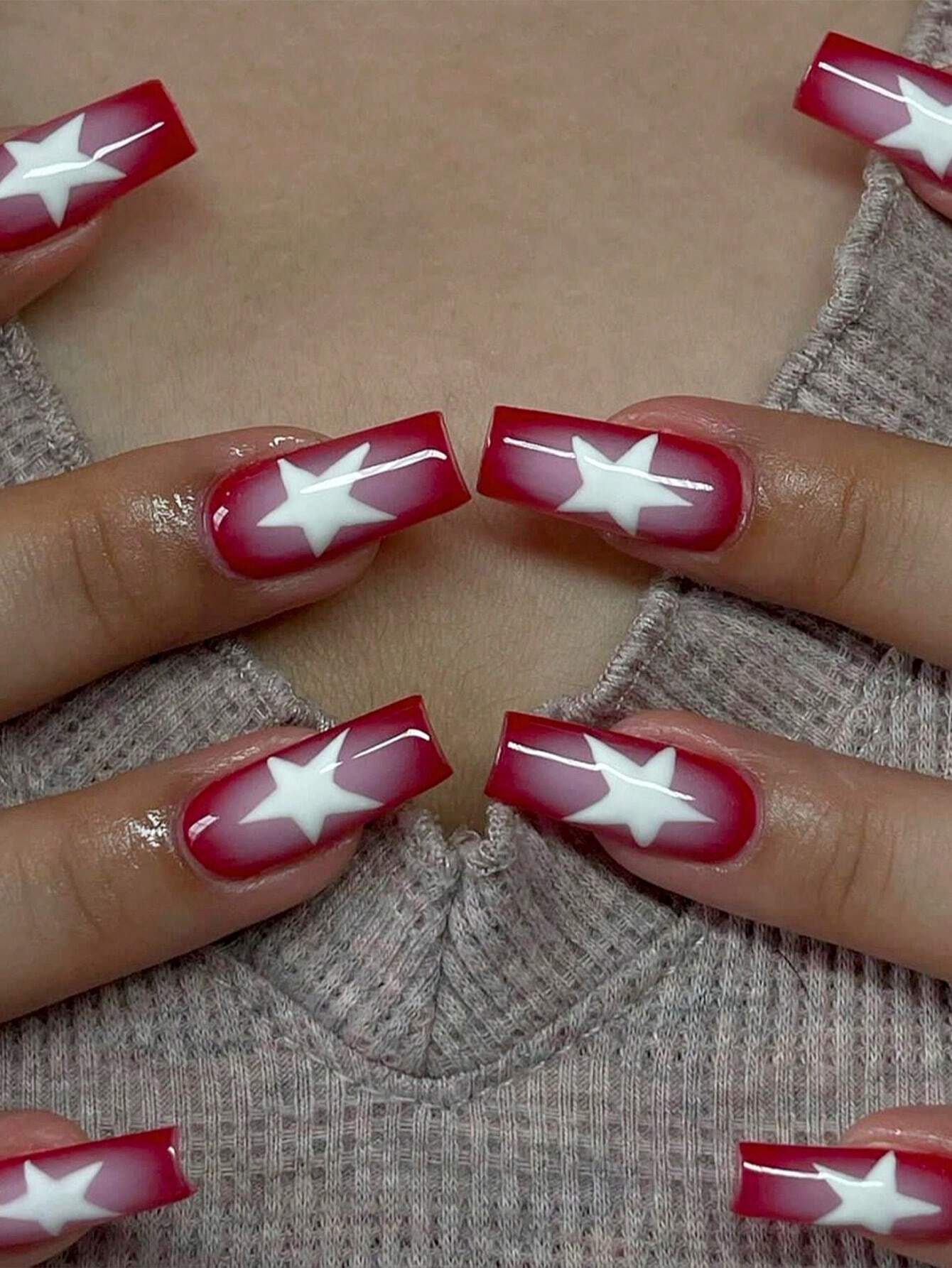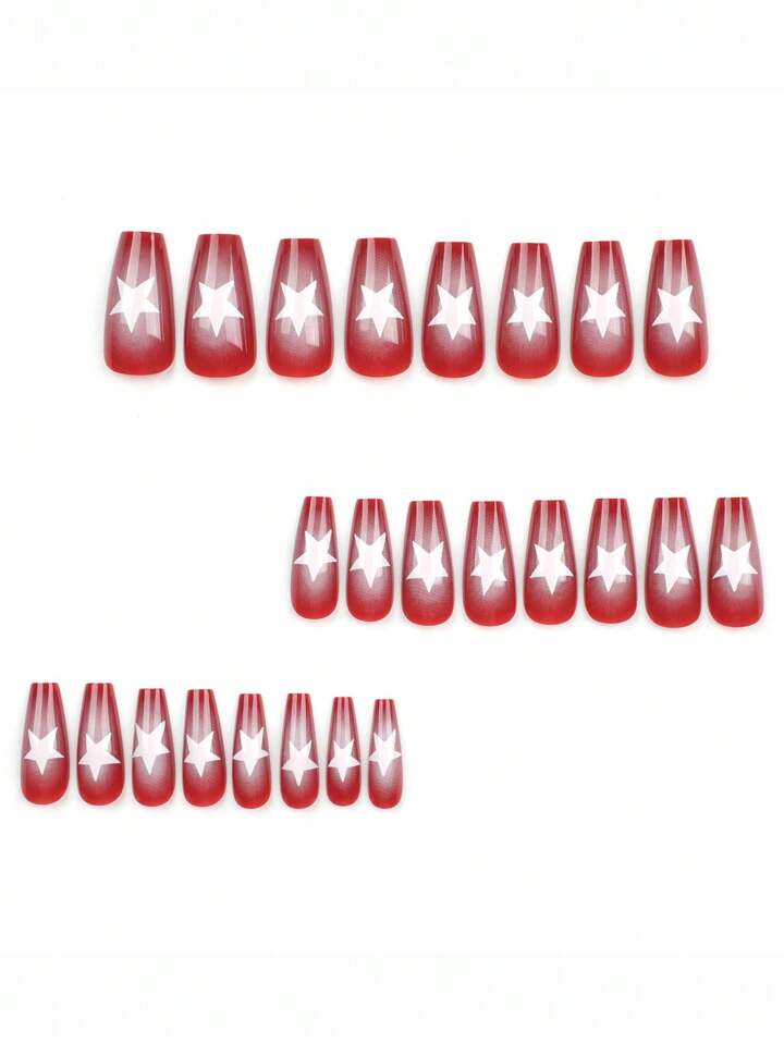 Street Life 24pcs White Star & Pentagram Design Full Cover Detachable False Nails Set