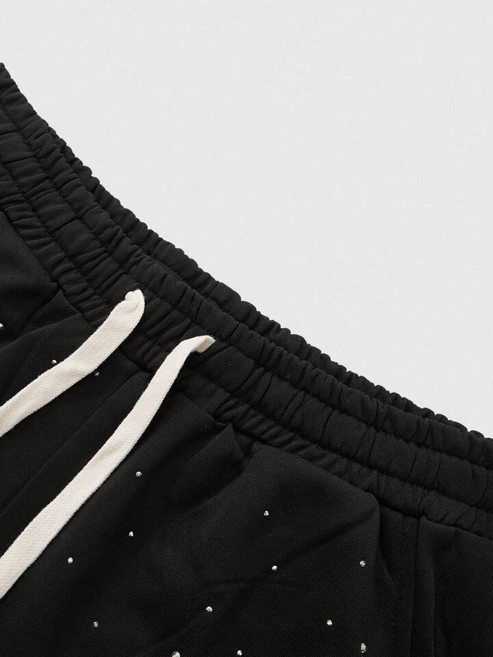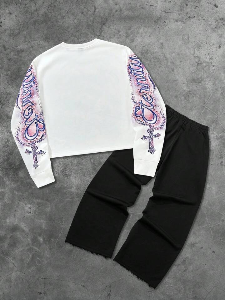Street Life 2pcs Men Renaissance Angel Print Matching Rhinestone Embellished Hoodie & Sweatpants Set, Suitable For Autumn/Winter