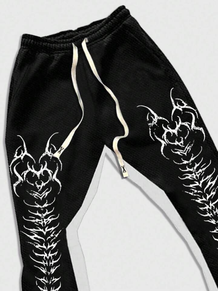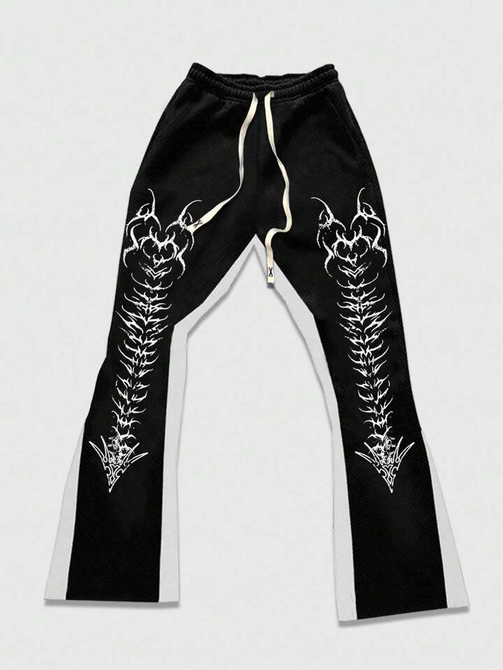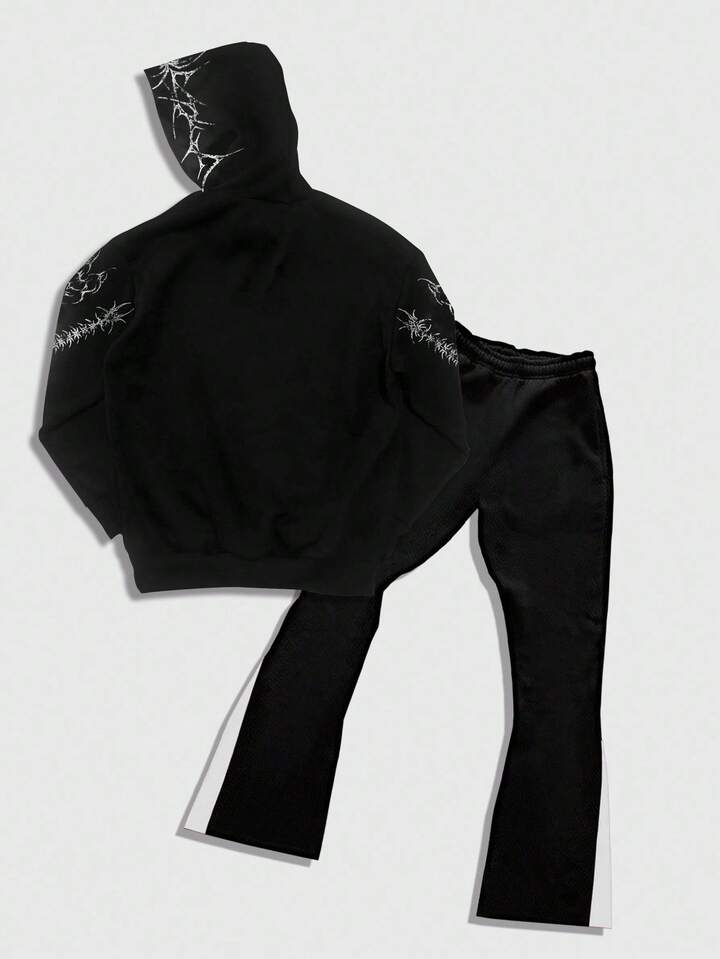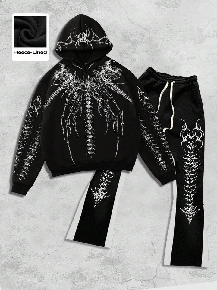 Street Life 2pcs Men's Gothic Hooded Sweatshirt Set, Autumn/Winter