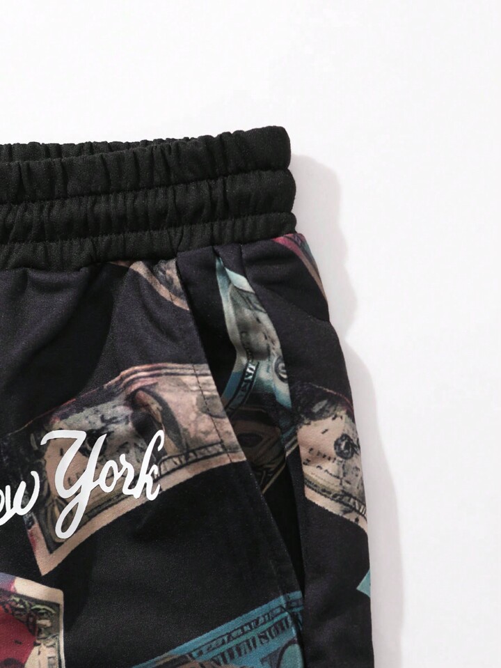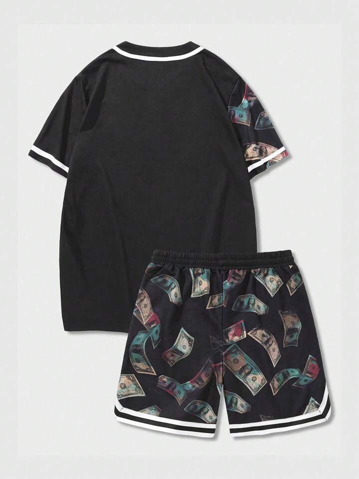 Street Life 2pcs/Set Men'S Dollar Bill Print Short Sleeve Shirt And Shorts Ideal For Daily Wear In Spring And Summer