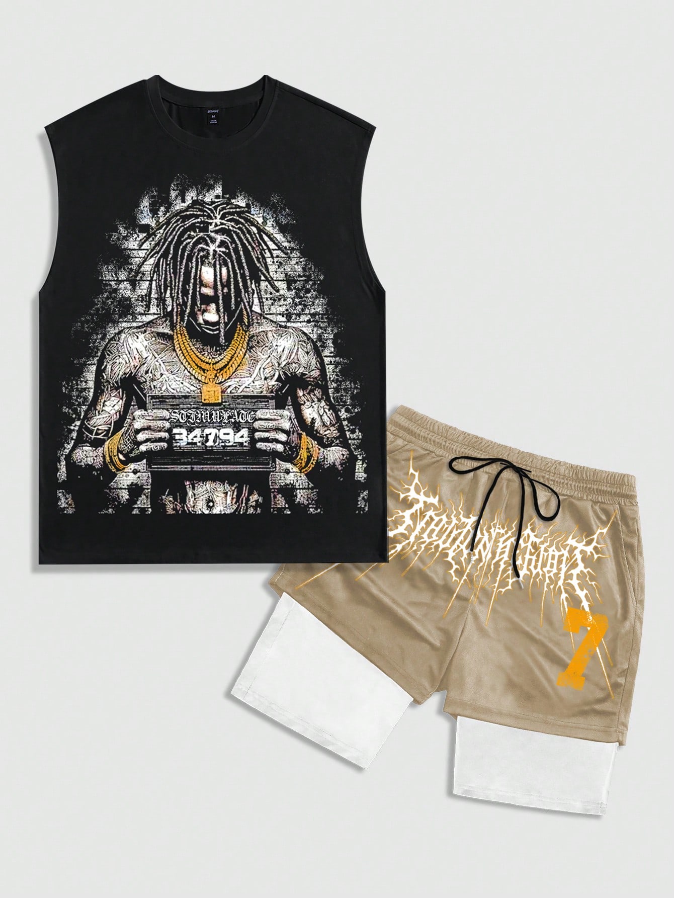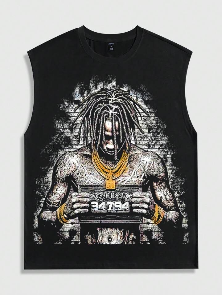 Street Life 2pcs/Set Men's Casual Cartoon Y2K Print Tank Top