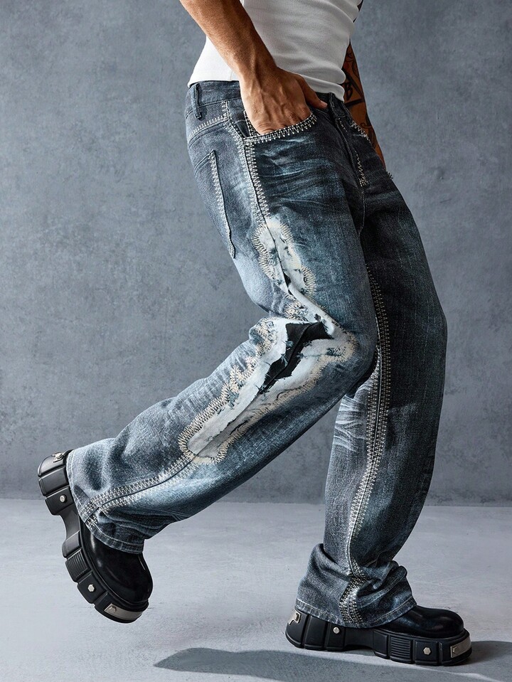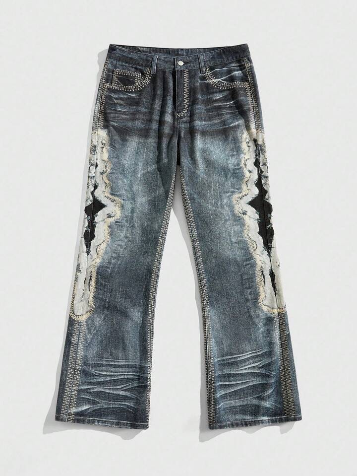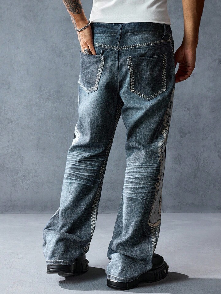 Street Life Casual Fashion Versatile Button Fly Slim Tapered Leg Men's Jeans