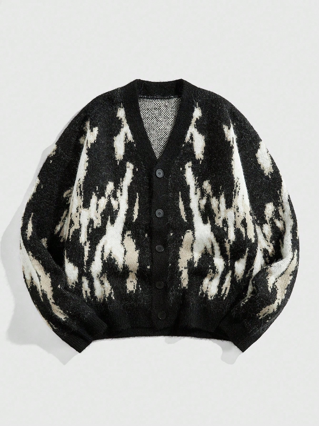 Street Life Casual Loose Fit Button-Up Long Sleeve Men Cardigans, Fall Winter, Grunge Style