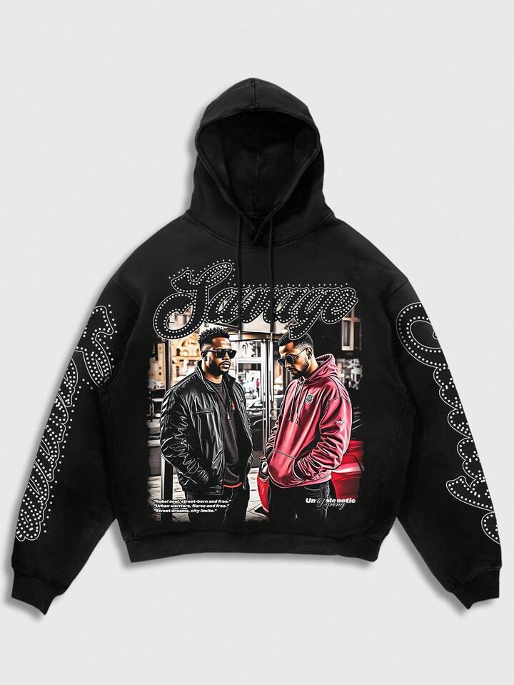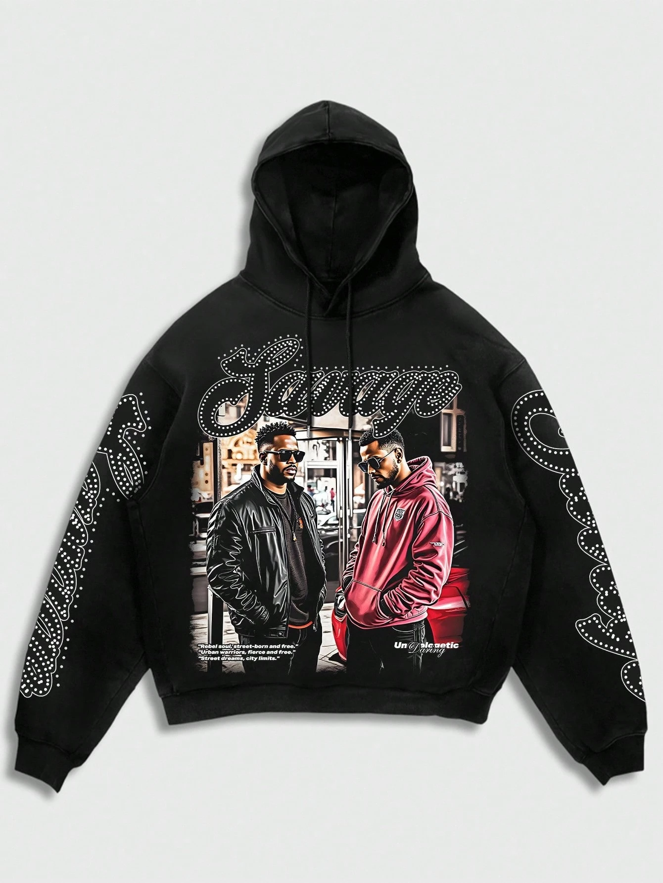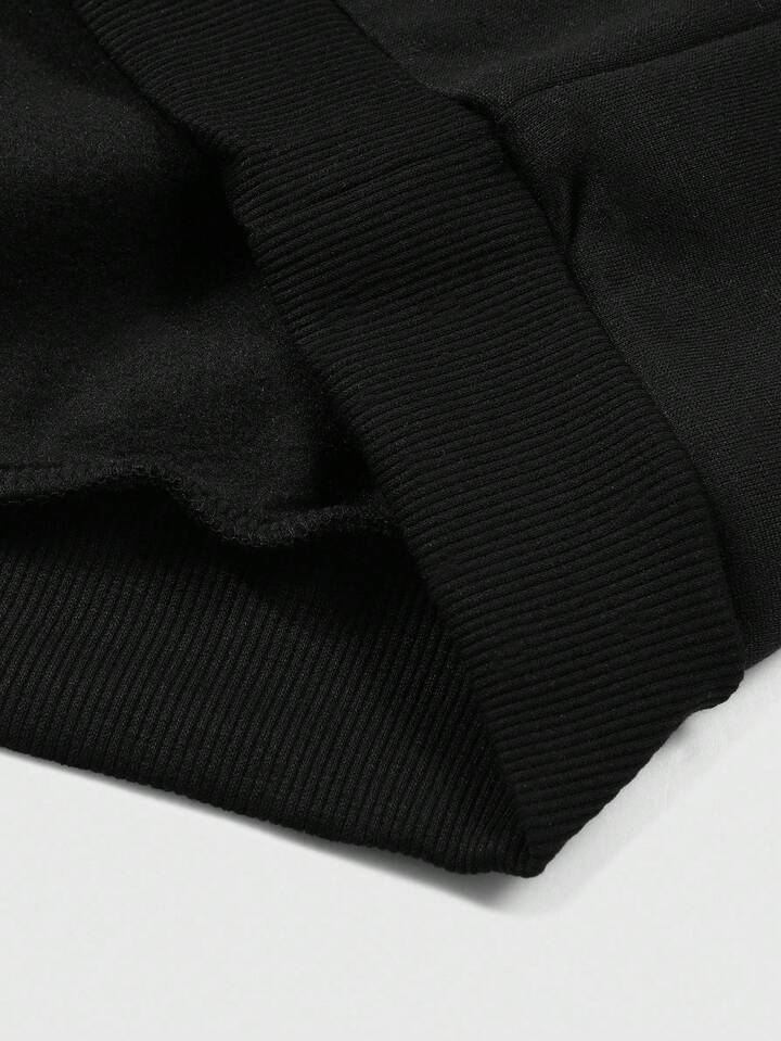 Street Life Fashionable Casual Men's Black Hoodie Sweatshirt Without Pockets, Winter