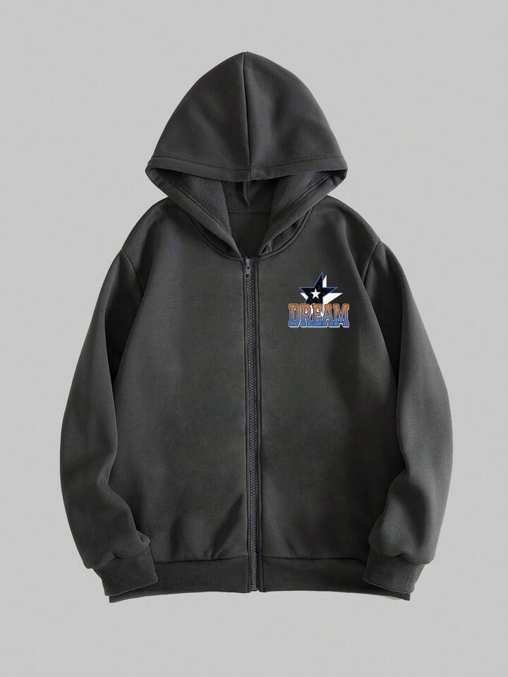 Street Life Guys Car And Letter Graphic Drawstring Thermal Lined Hoodie