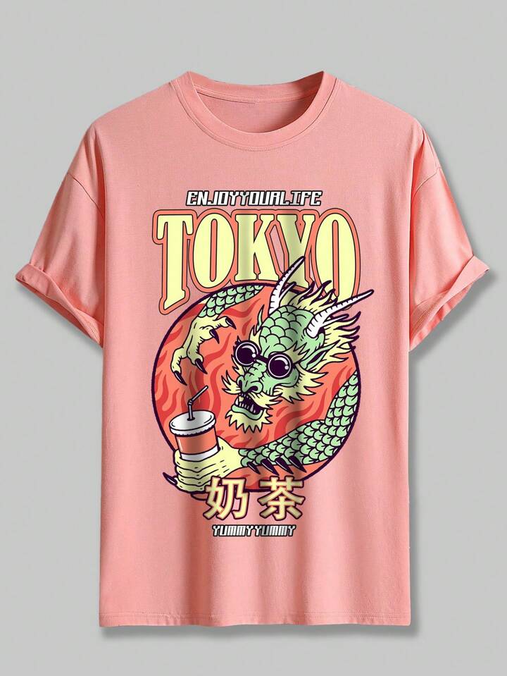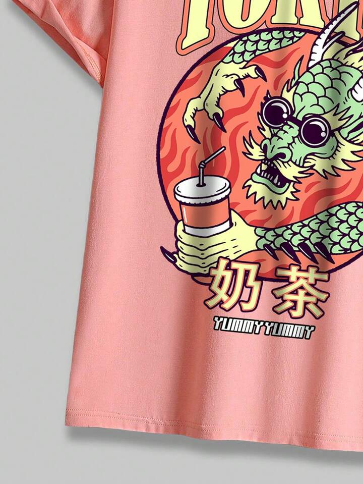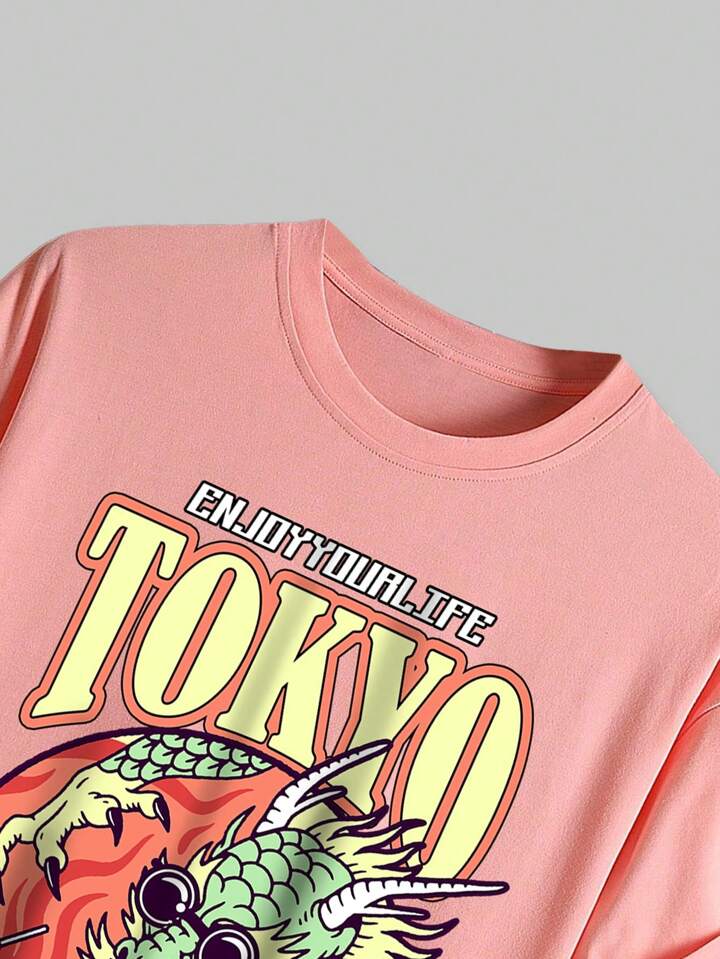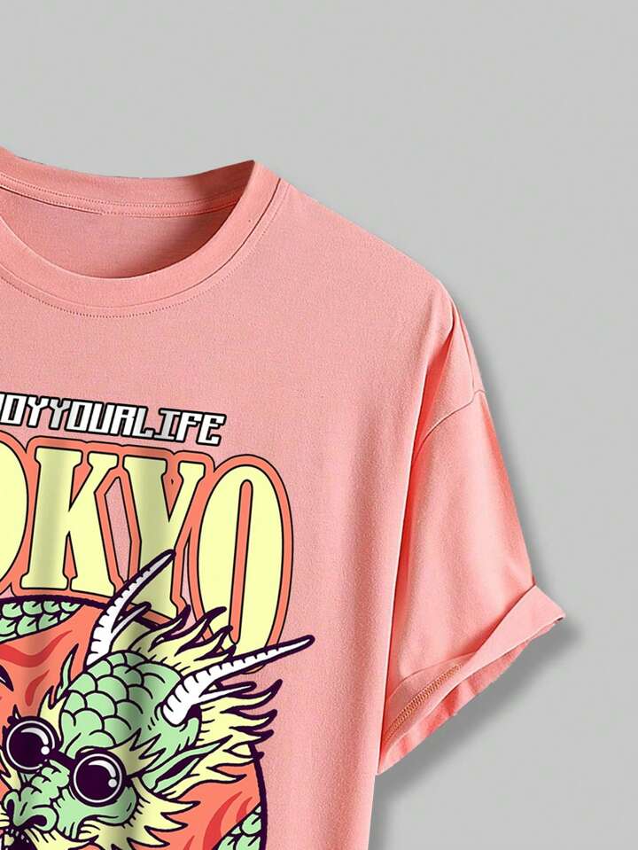 Street Life Guys Dragon & Letter Graphic Tee
