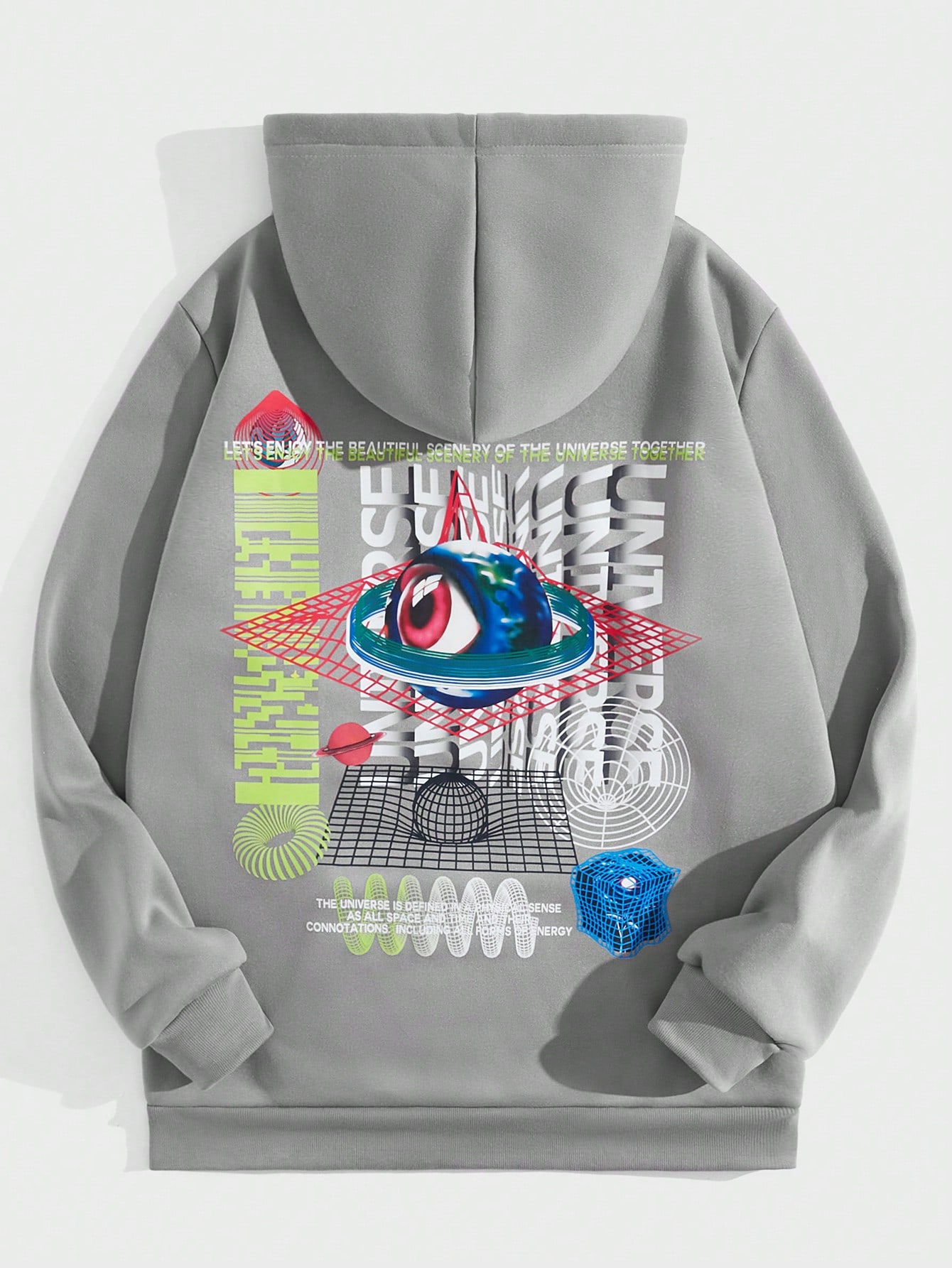 Street Life Guys Eye & Slogan Graphic Kangaroo Pocket Drawstring Thermal Hoodie