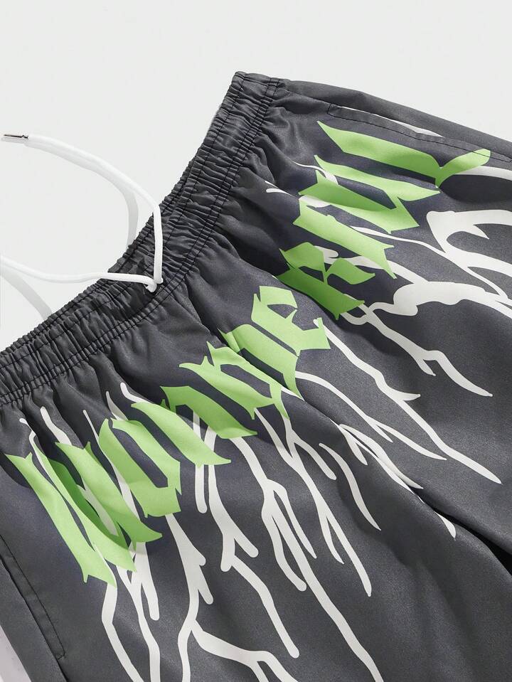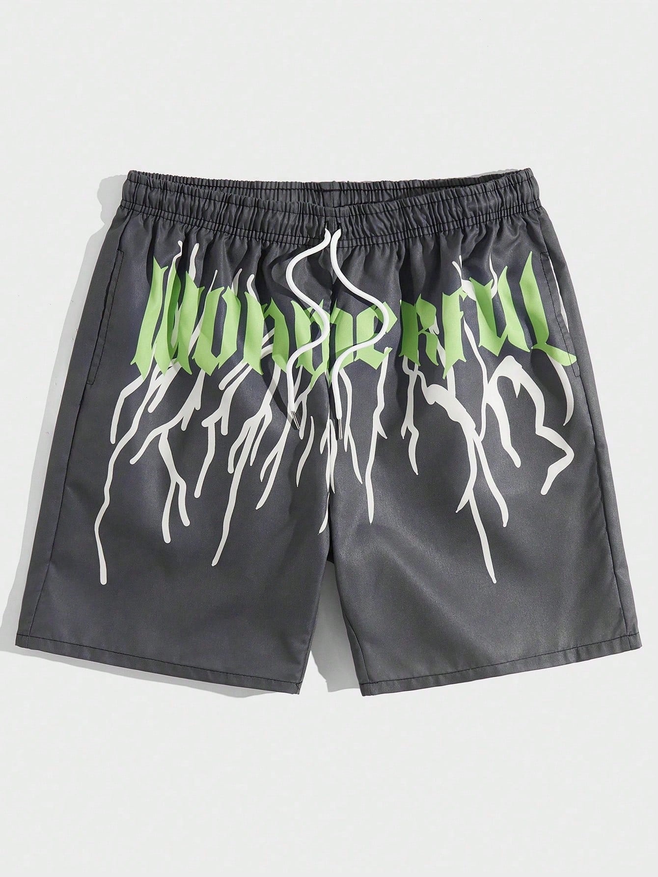 Street Life Guys Letter Graphic Drawstring Waist Shorts