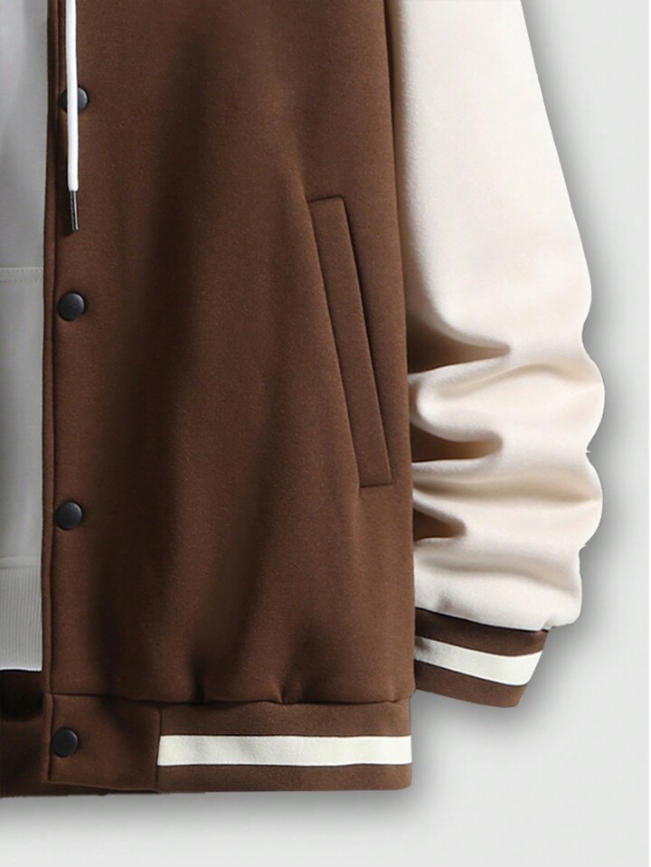 Street Life Guys Letter Graphic Two Tone Varsity Jacket Without Hoodie