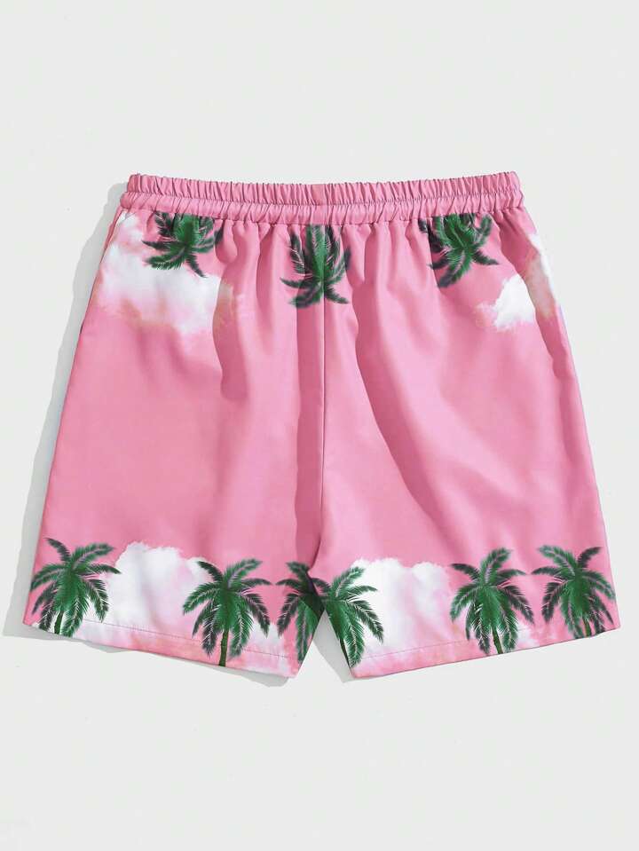 Street Life Guys Letter & Palm Tree Print Drawstring Waist Shorts