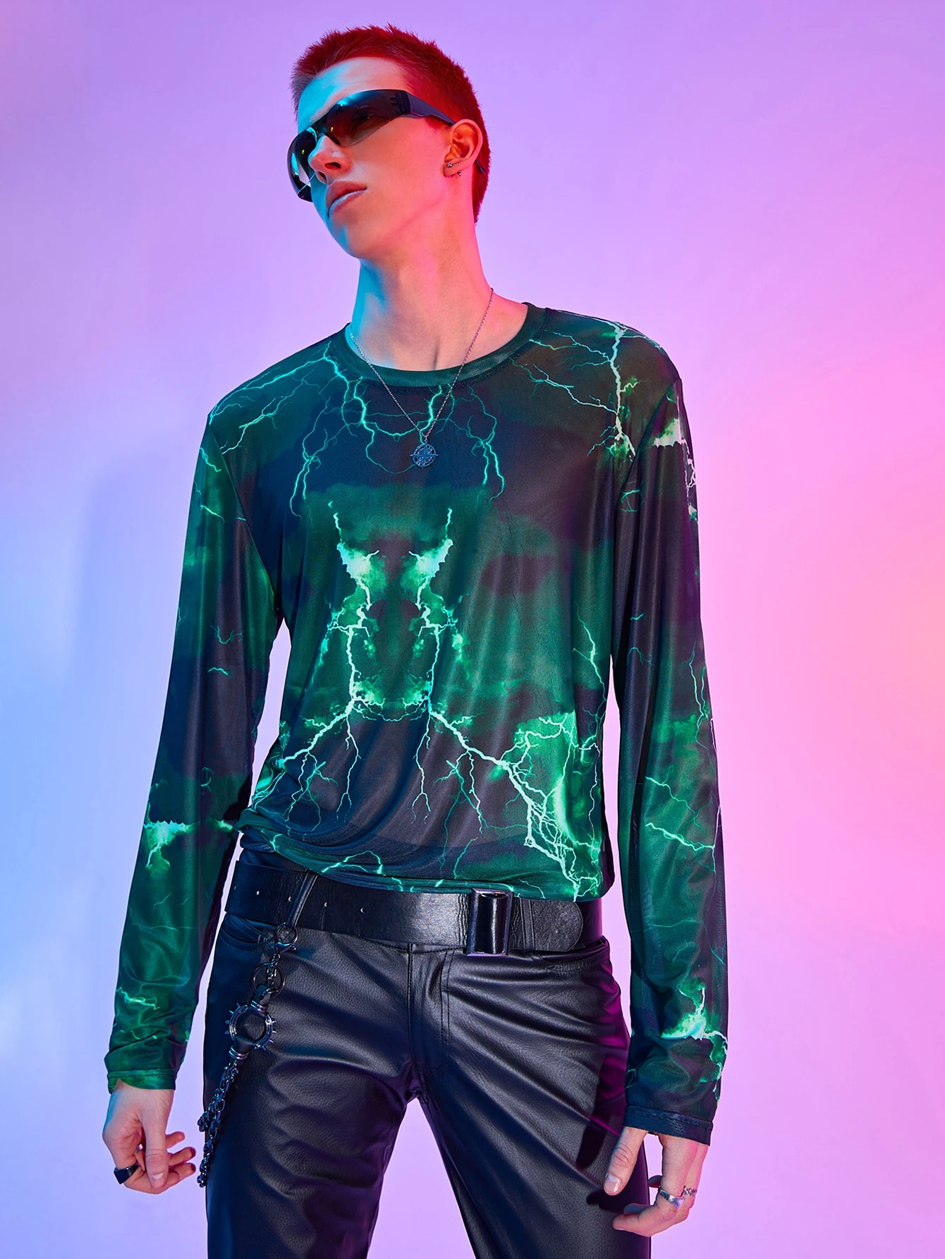 Street Life Guys Lightning Print Mesh Tee