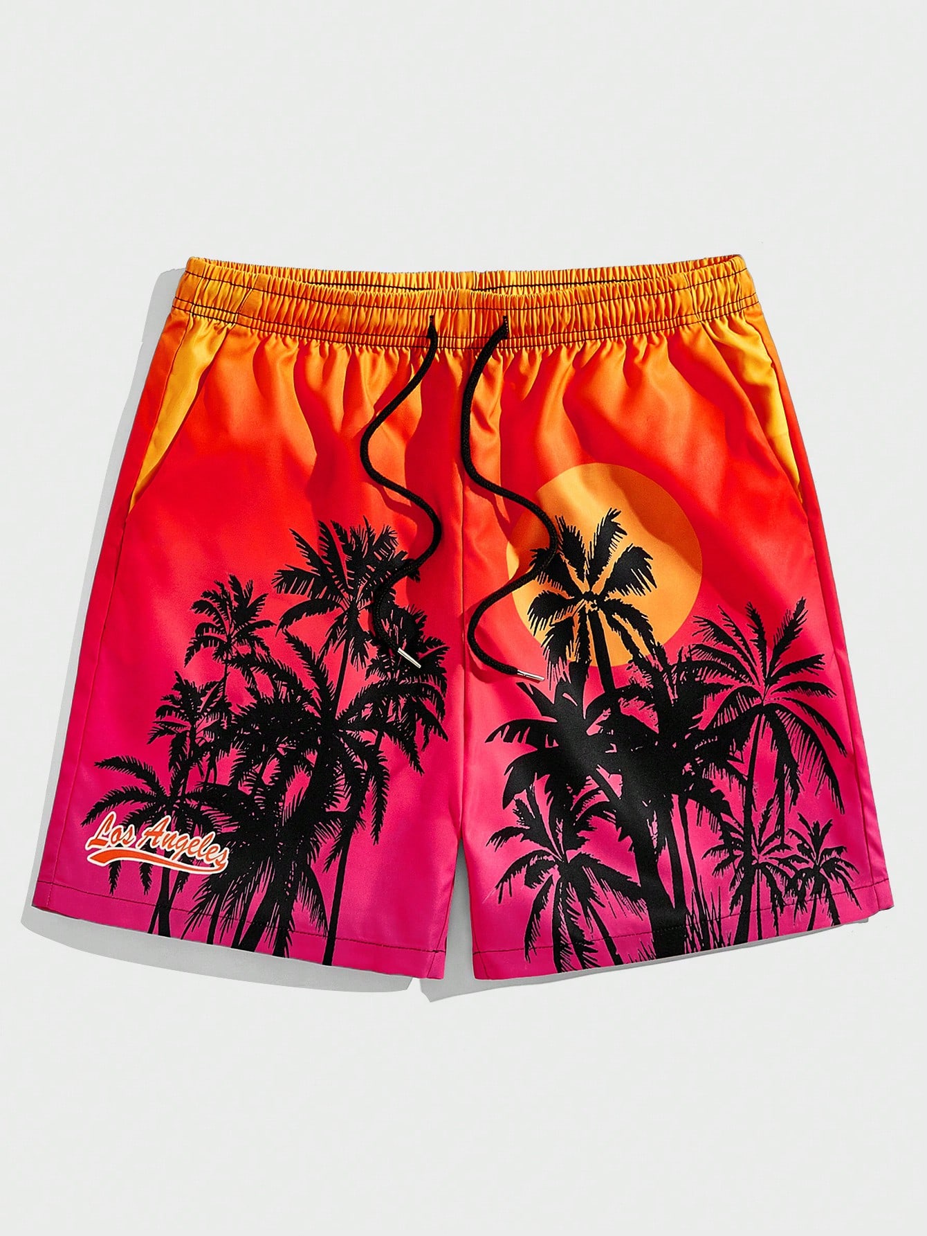 Street Life Guys Ombre Coconut Tree Print Drawstring Waist Shorts
