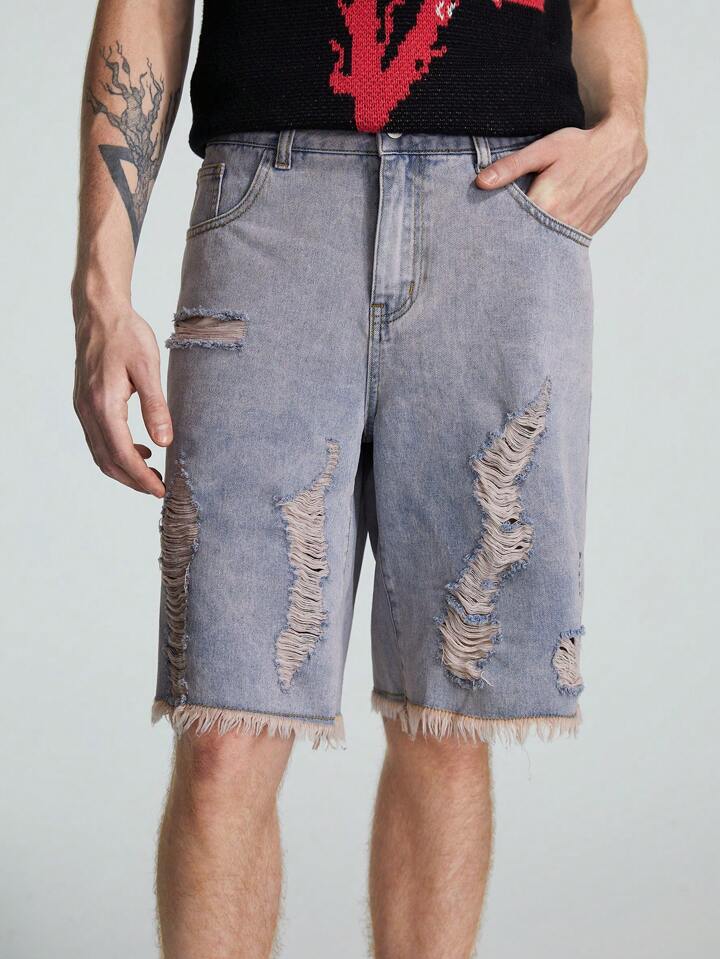 Street Life Guys Ripped Frayed Raw Hem Bermuda Denim Shorts