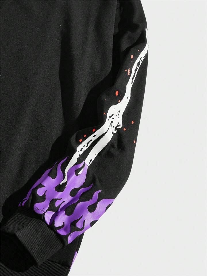 Street Life Guys Skeleton & Fire Print Drop Shoulder Sweatshirt