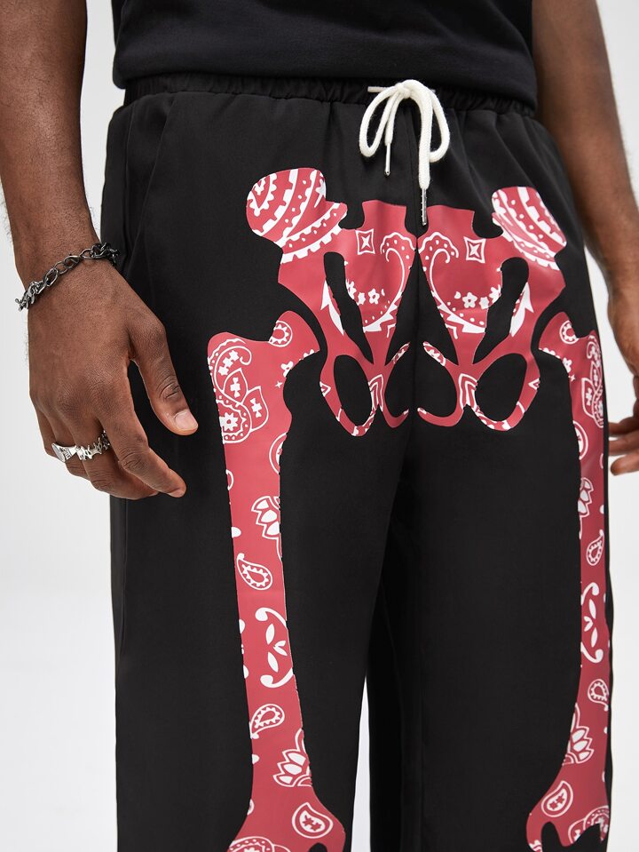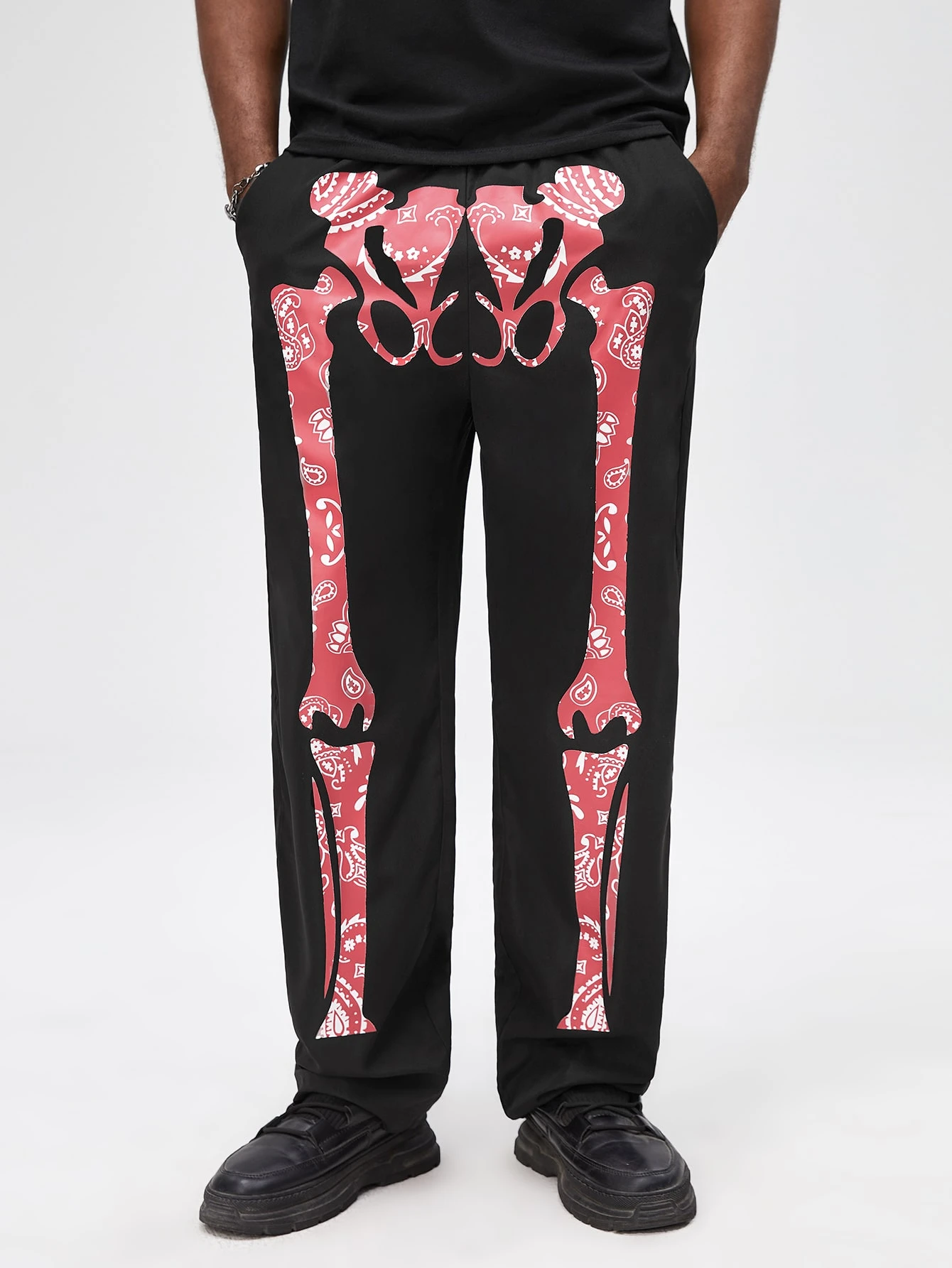 Street Life Guys Skeleton Print Drawstring Waist Pants