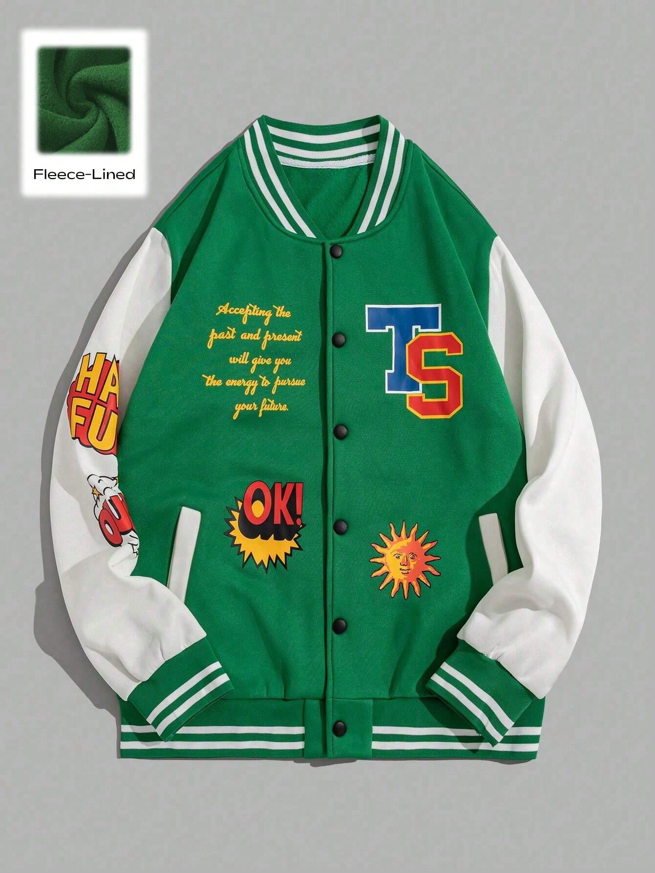 Street Life Guys Slogan Graphic Striped Trim Colorblock Varsity Jacket
