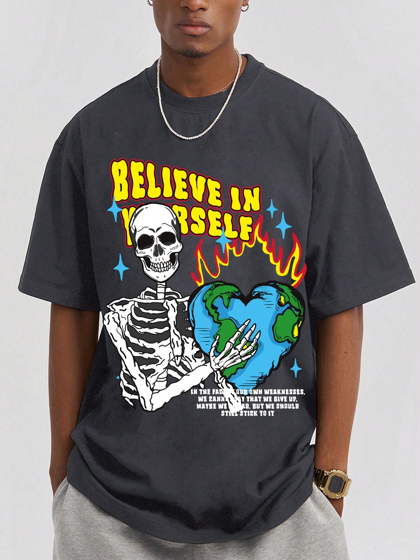 Street Life Guys Slogan & Skeleton Print Tee