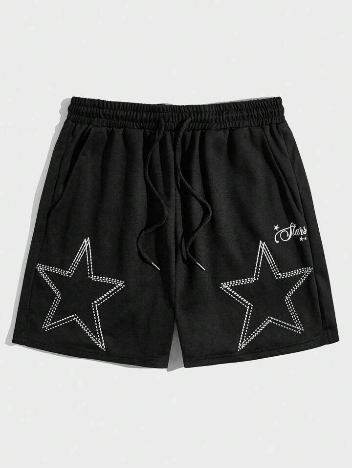 Street Life Guys Star & Letter Graphic Drawstring Waist Shorts