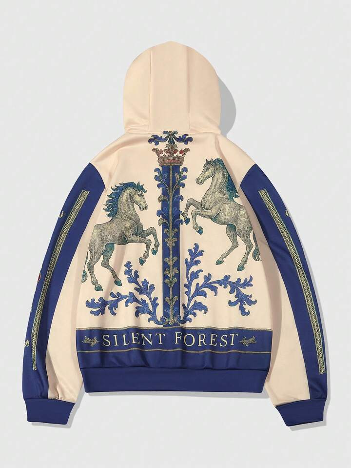 Street Life Knight On Horse Graphic Zip-Up Hooded Sweatshirt Sweatshirt