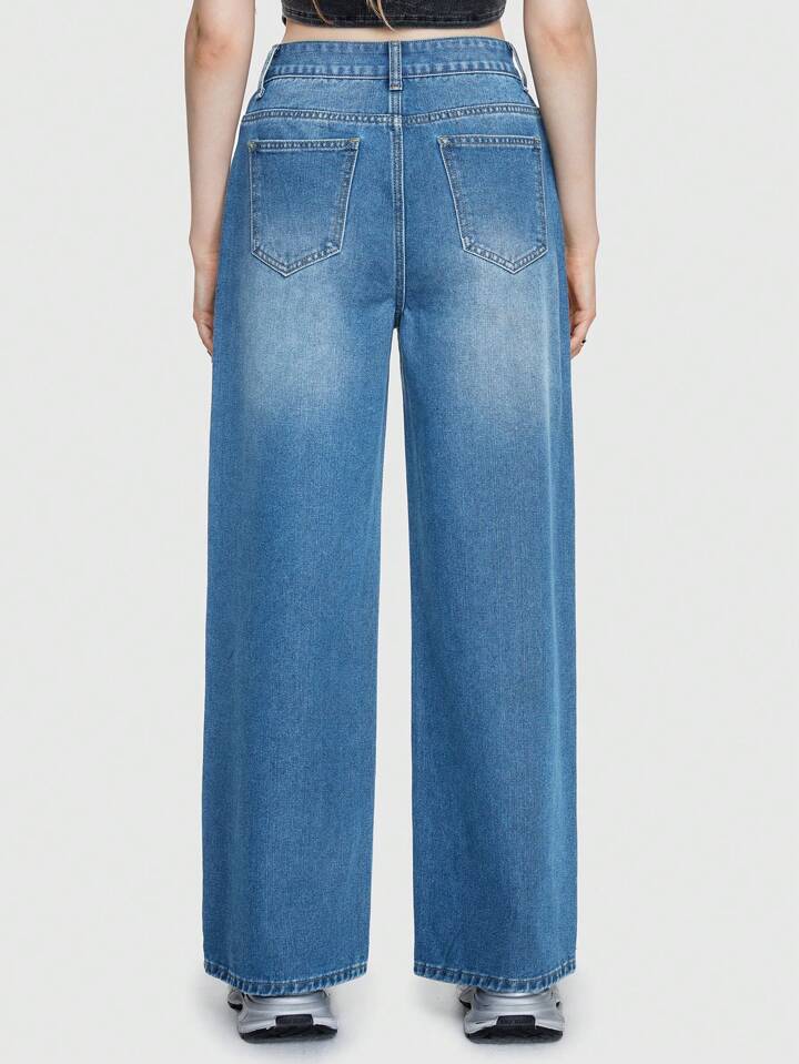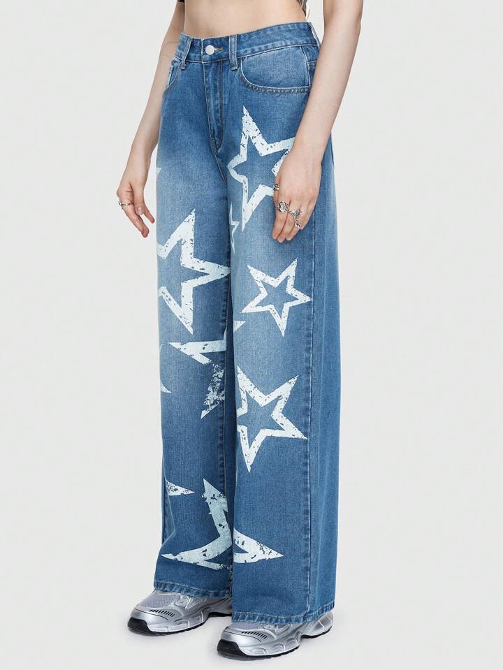Street Life Ladies' Straight-leg Light Blue Star Printed Jeans