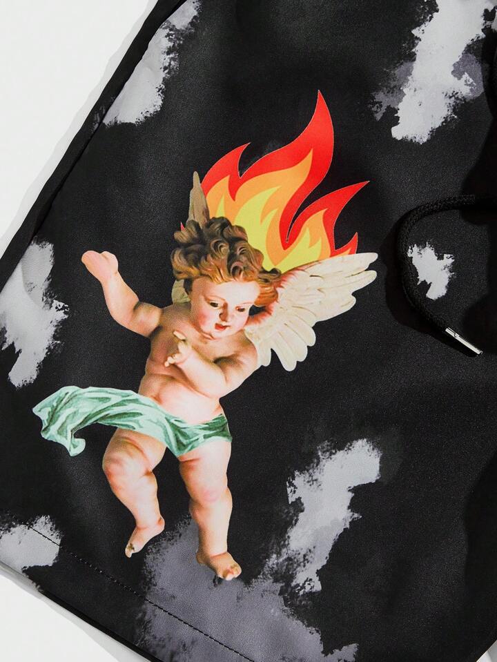 Street Life Men Angel & Slogan Graphic Tie Dye Drawstring Waist Shorts