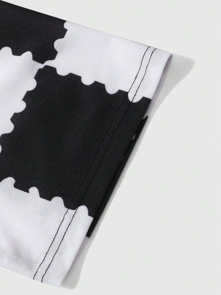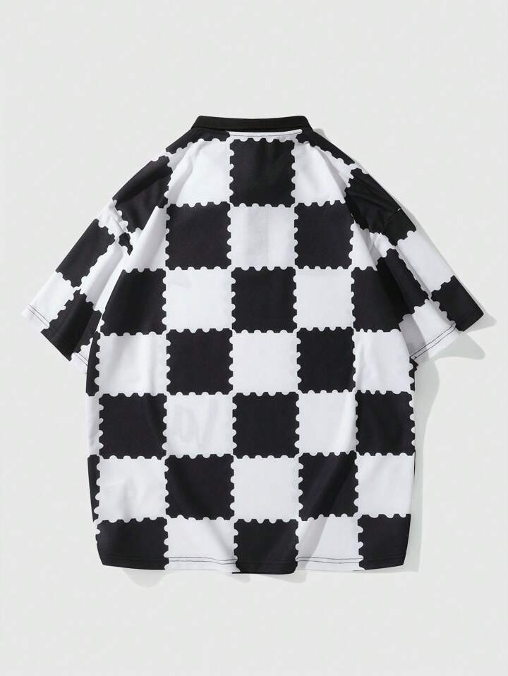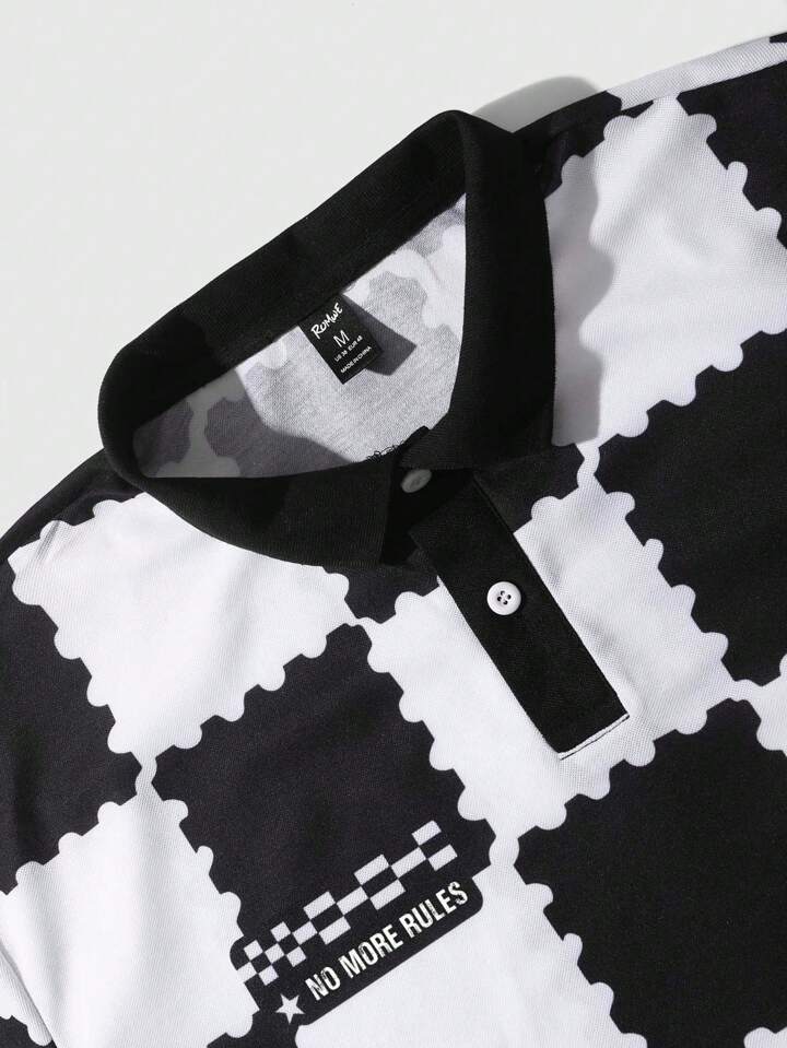 Street Life Men Black And White Checkered Short Sleeve Polo Shirt Sports Polo For Summer, School