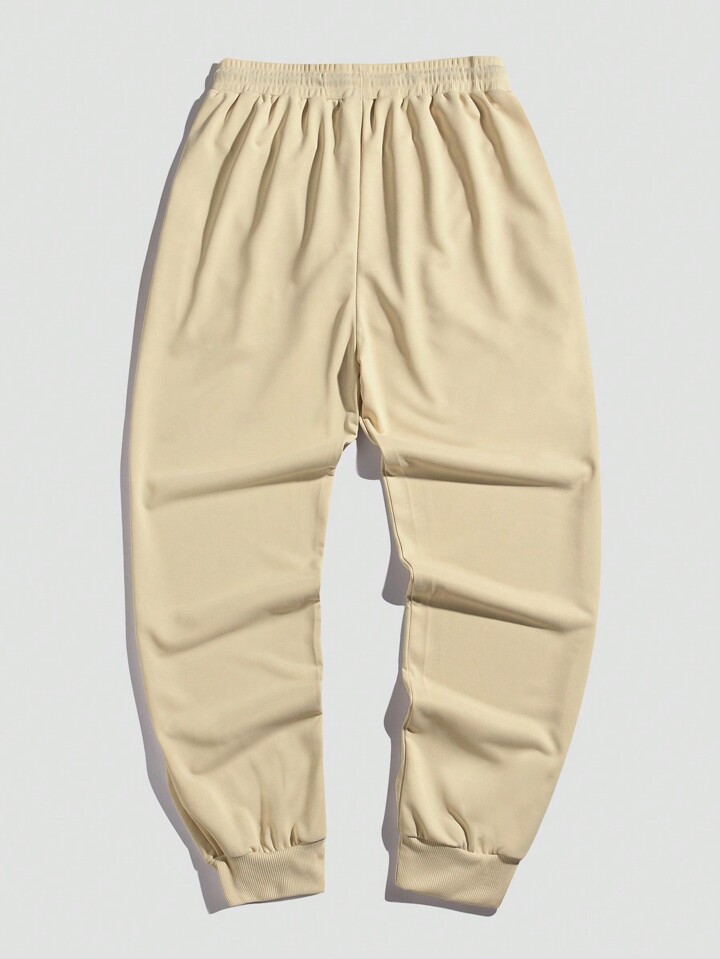 Street Life Men Cartoon Bear & Letter Print Drawstring Waist Joggers