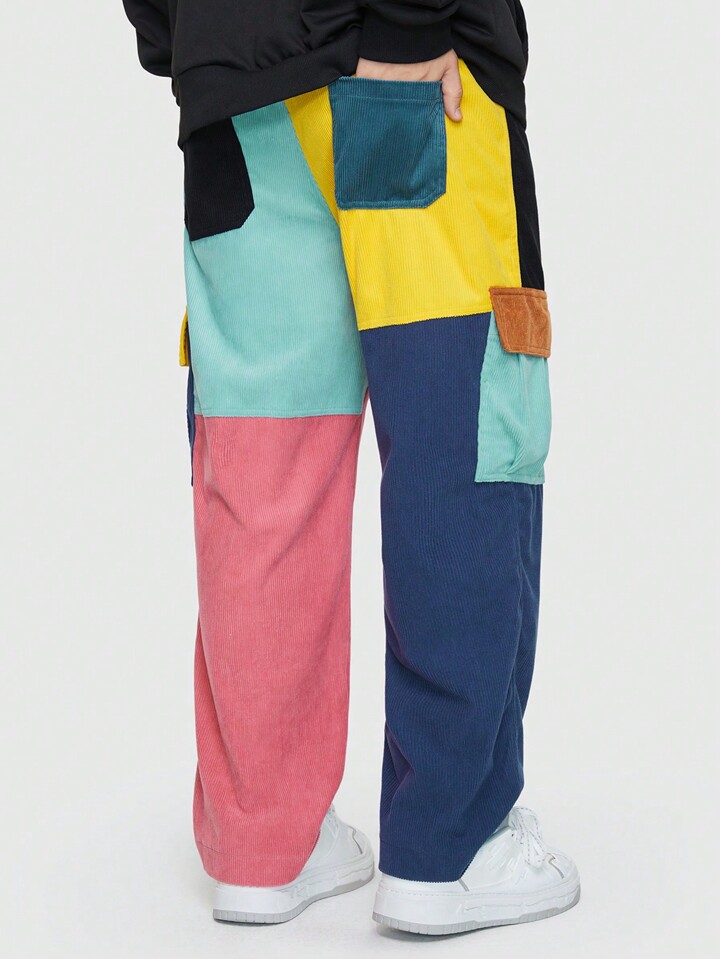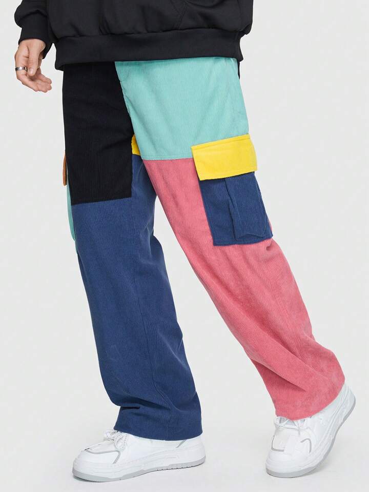 Street Life Men Colorblock Flap Pocket Side Corduroy Pants