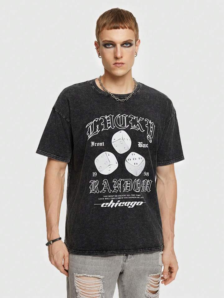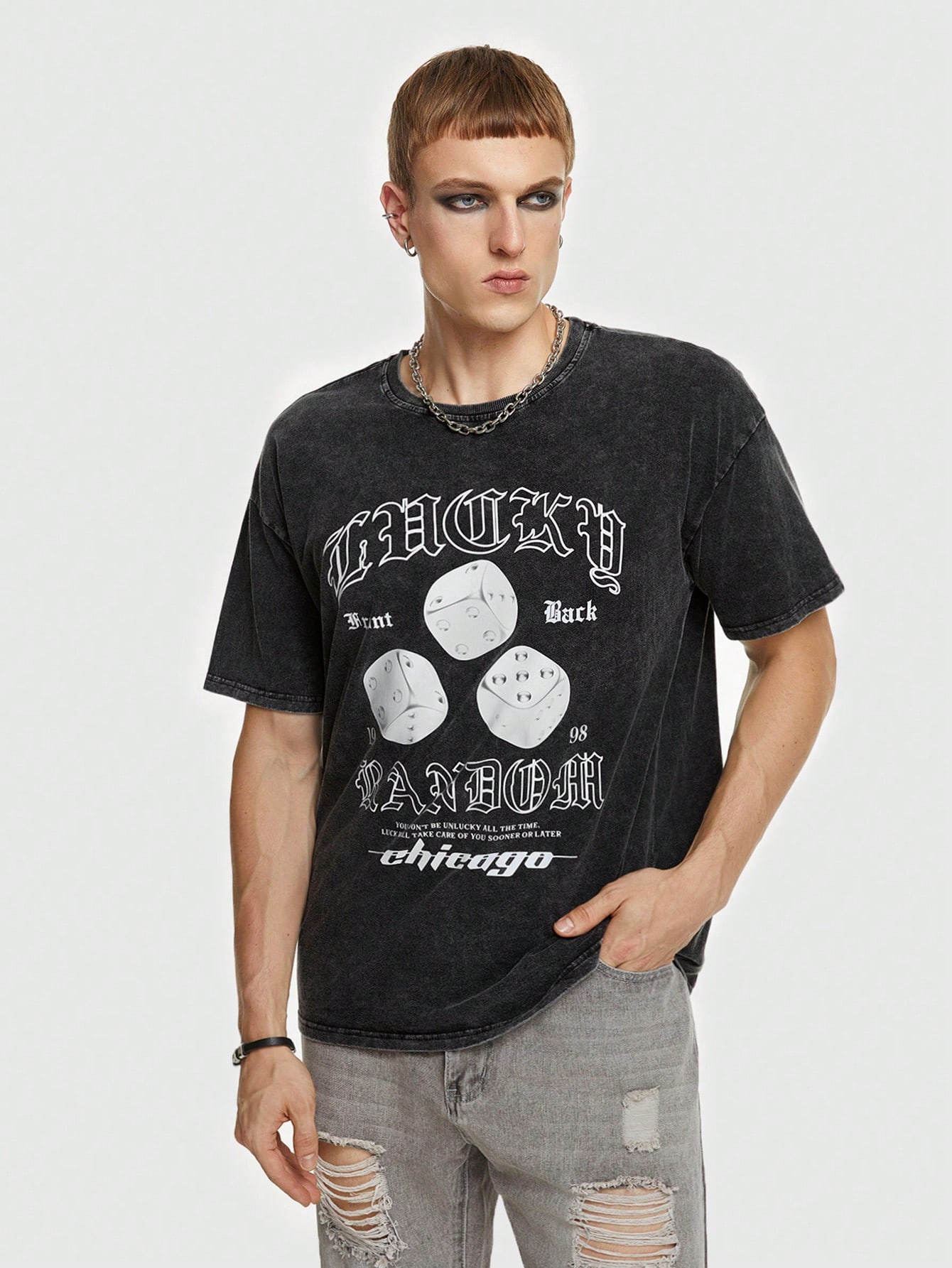Street Life Men Dice Print Round Neck Casual T-Shirt
