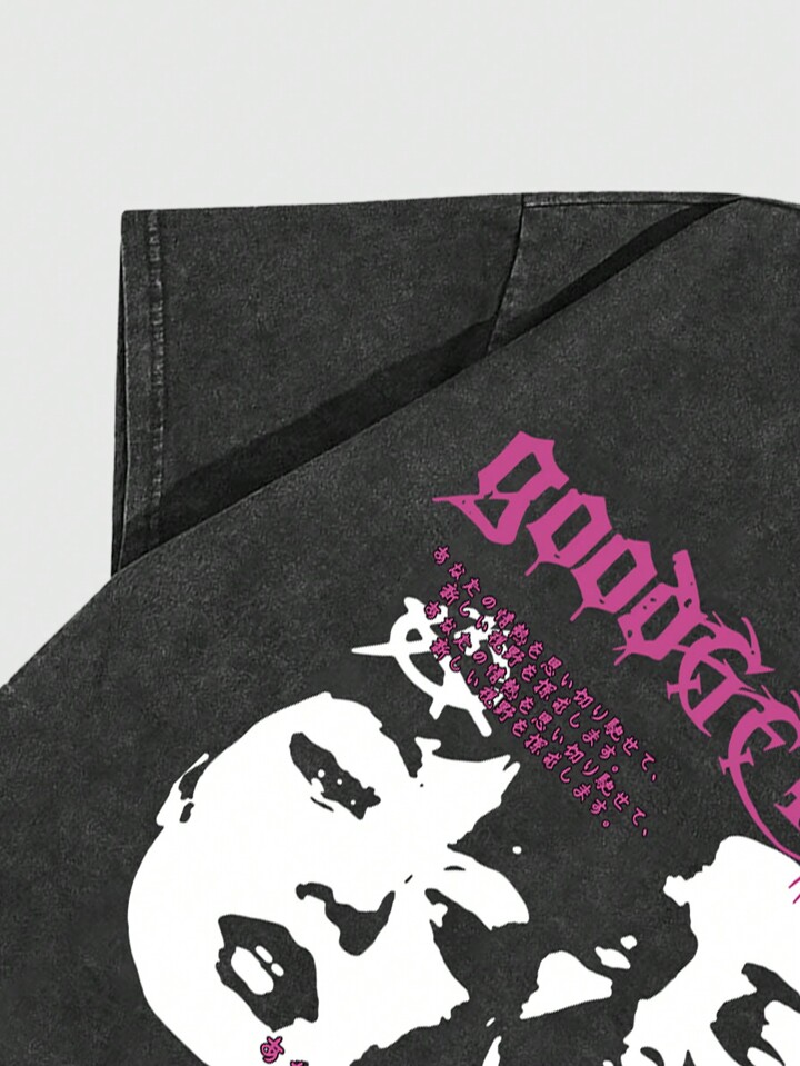 Street Life Men High Street Vintage Washed T-Shirt With Blurred Portrait Print