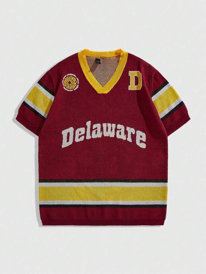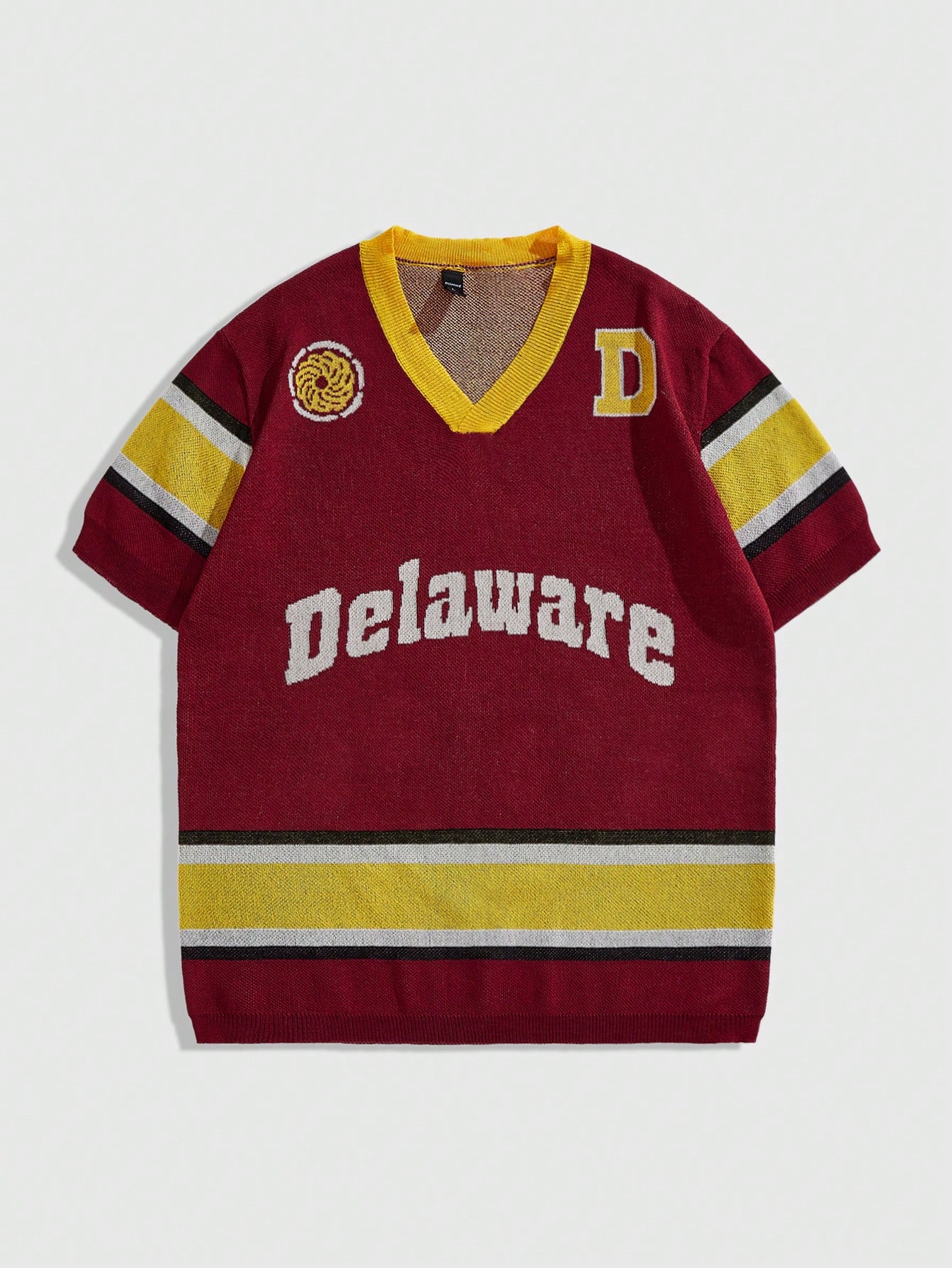 Street Life Men Jersey Slogan Jacquard Knit Short Sleeve Sweater