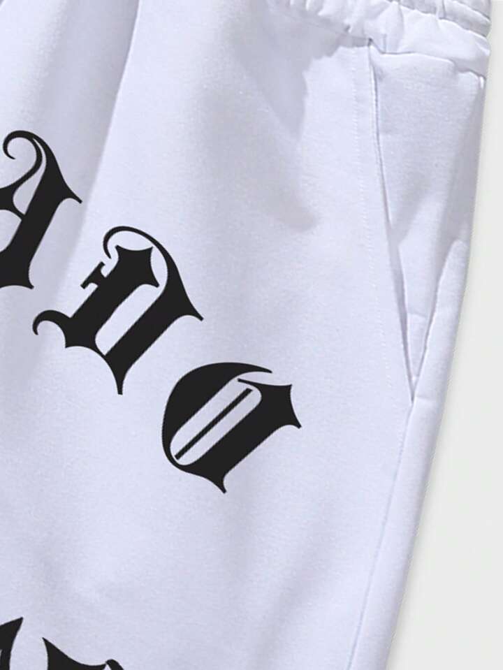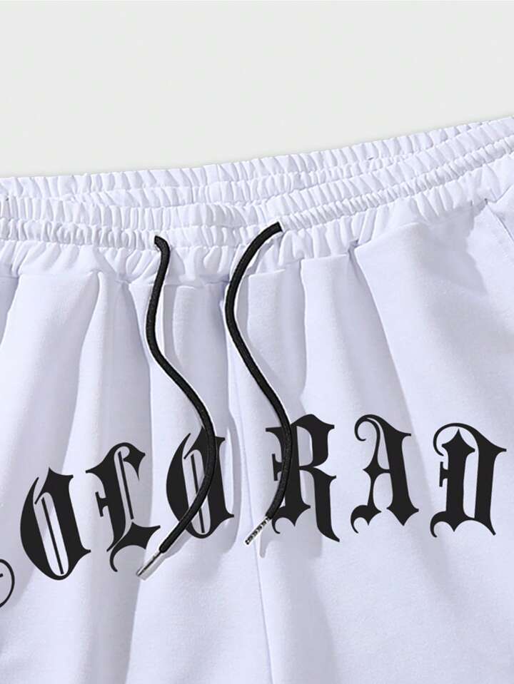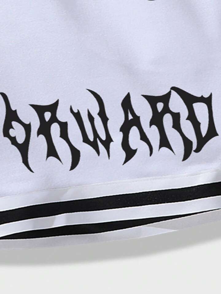 Street Life Men Letter Graphic Contrast Trim Drawstring Waist Basketball Shorts, School