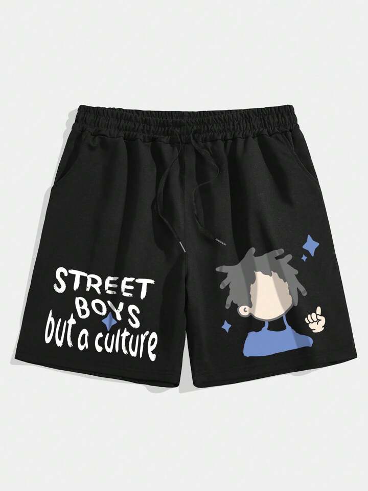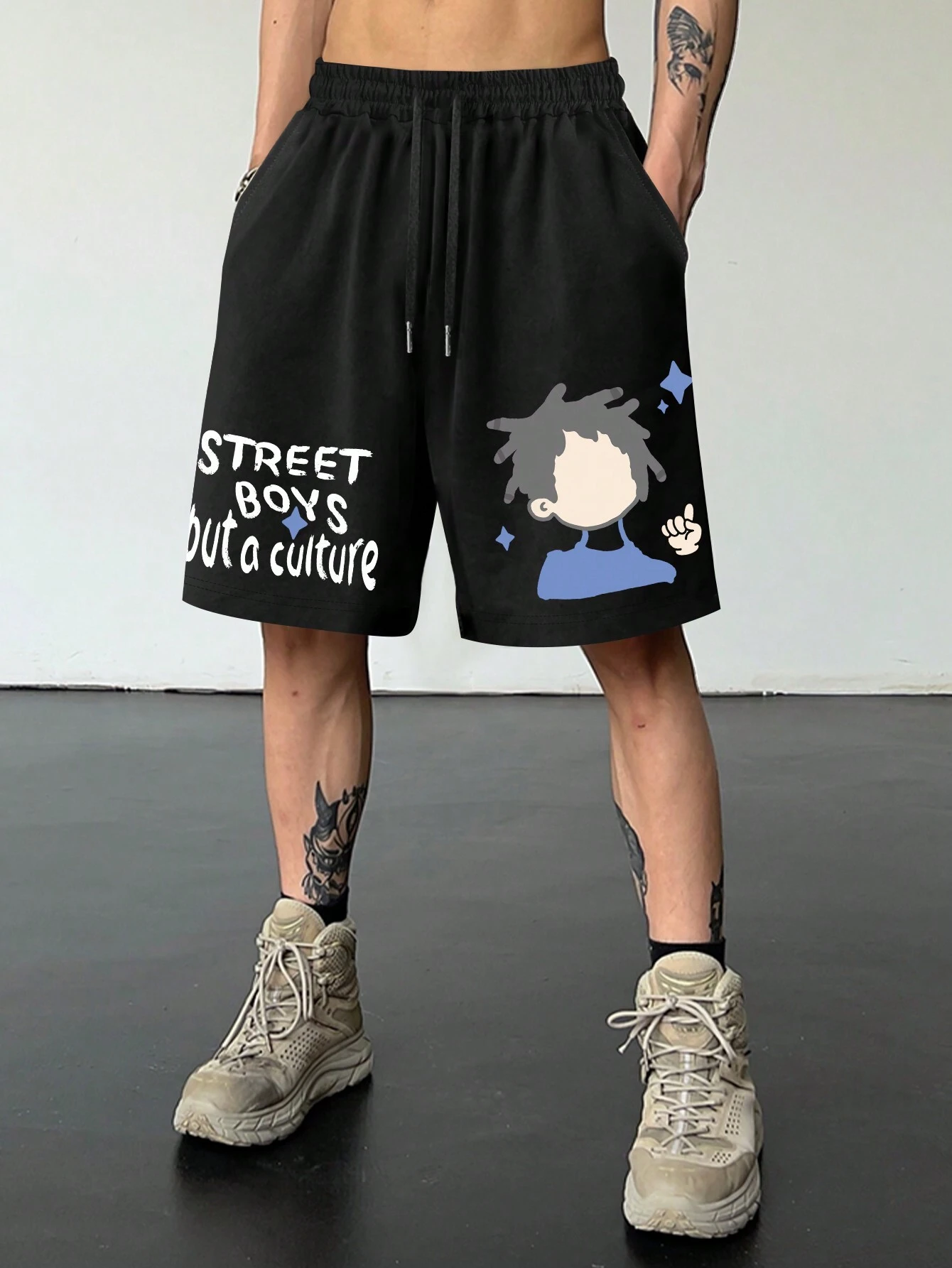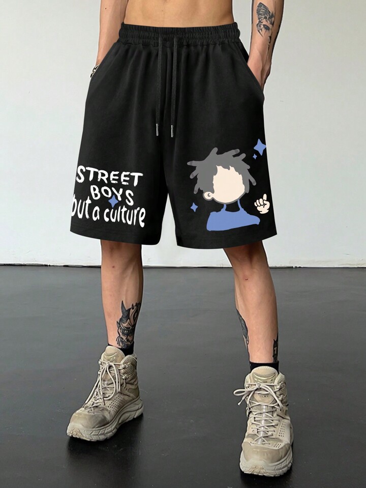 Street Life Men'S Cartoon Character & Slogan Printed Shorts